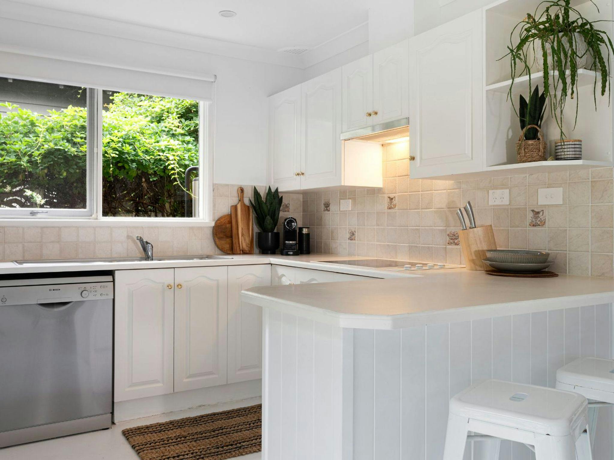 The fully equipped kitchen features all the essentials for family feasts, including a dishwasher, microwave, and Nespresso coffee pod machine.
