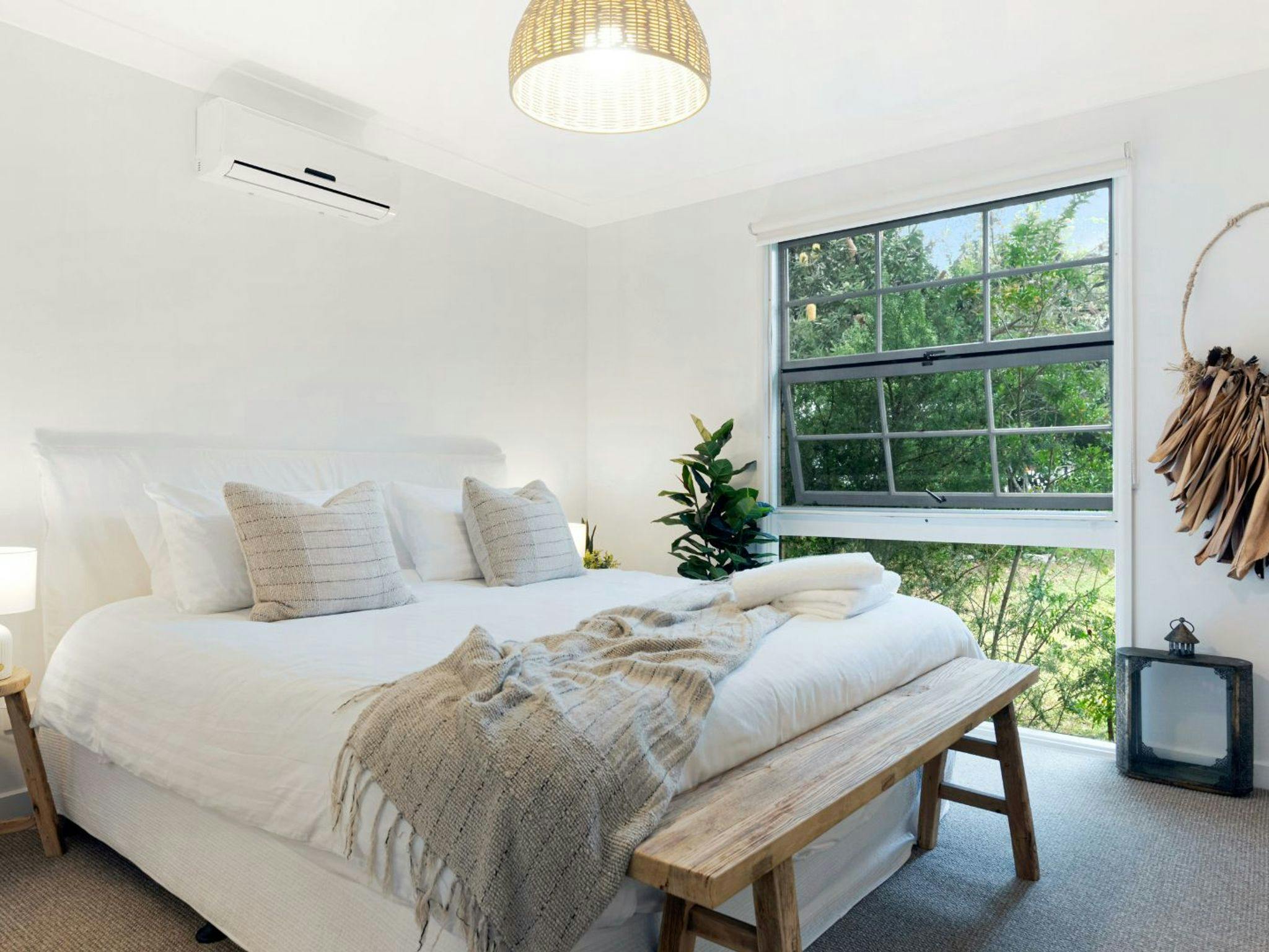The open plan living, dining, and kitchen area is a hub of comfort and all on one level, complete with reverse cycle air conditioning to keep things cool in summer, and a slow combustion fireplace to add a touch of warmth and magic on cooler evenings.