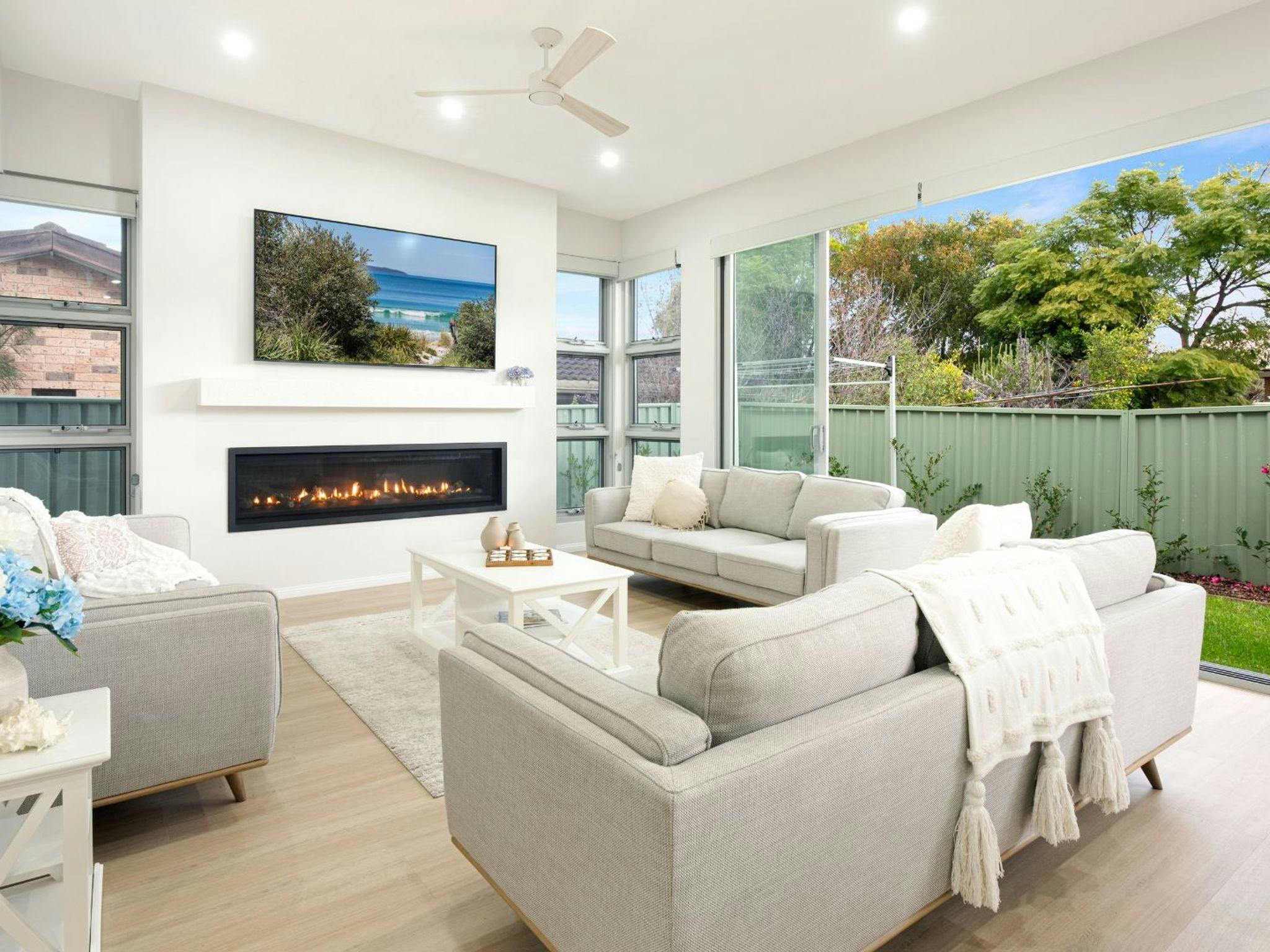 Stay comfortable all year round, with ducted air conditioning and ceiling fans throughout the home for those warmer months, accompanied by a modern fireplace radiating warmth for the colder months.