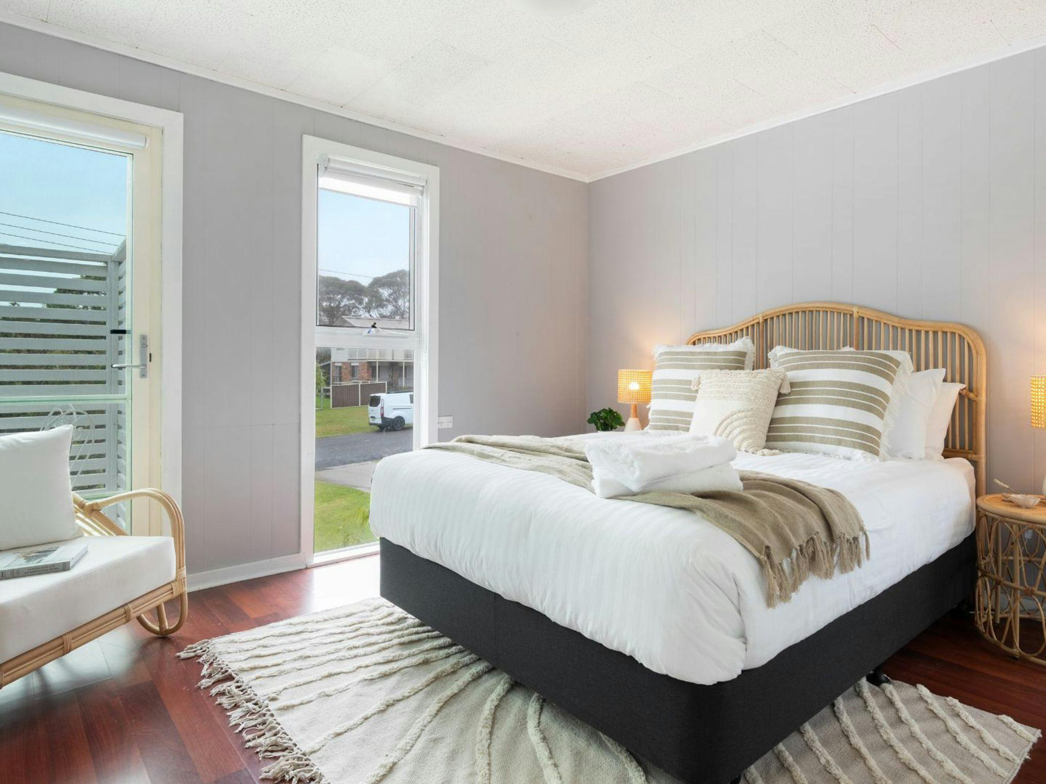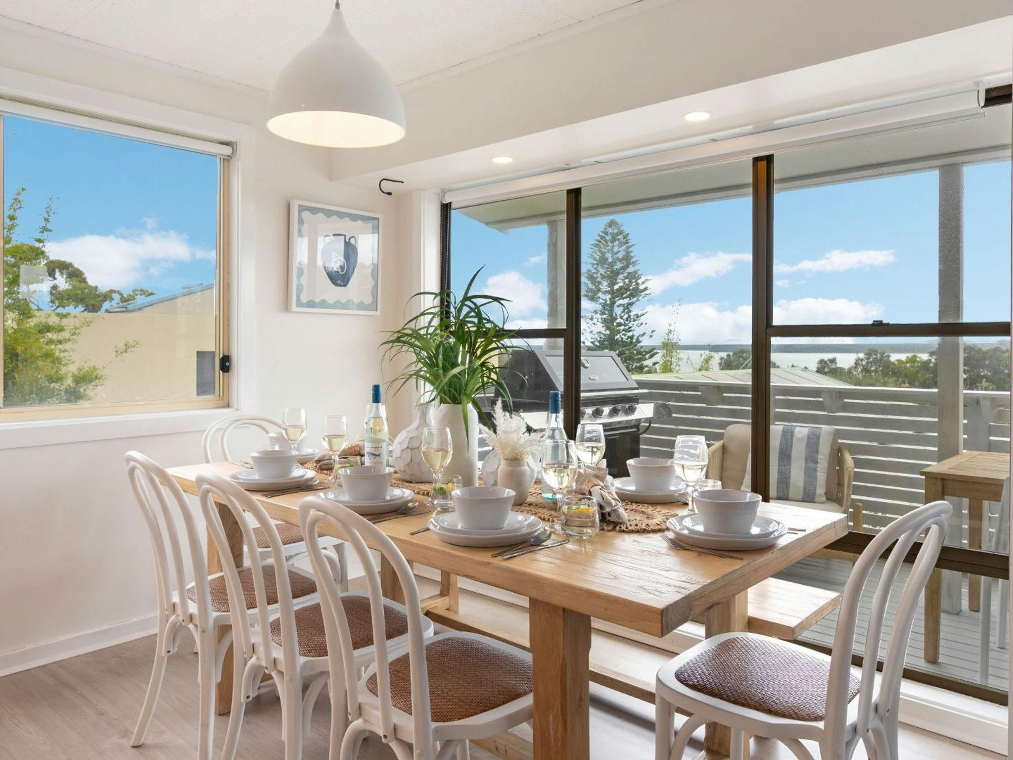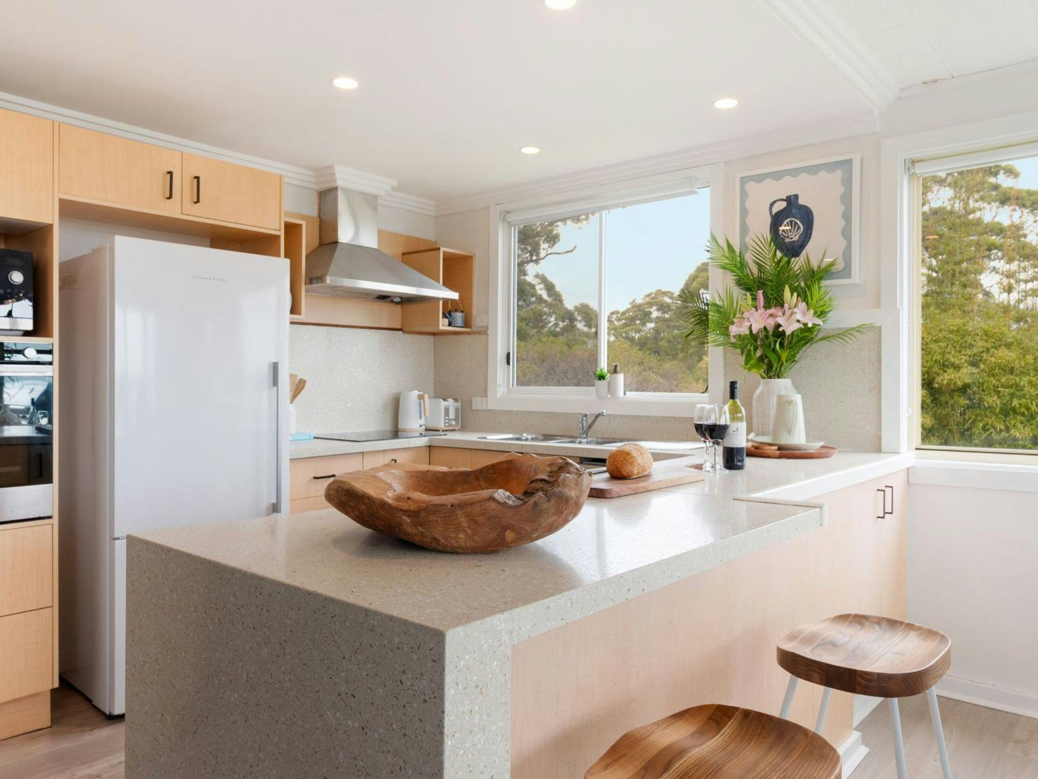 Just a 1km stroll from the stunning shores of Culburra Beach, Lakeview Retreat offers the best of coastal charm and convenience. Outside, the enclosed backyard is ideal for both kids and pets to play, with a firepit and lounge area for winding down. Upstairs, enjoy sunset drinks on the covered balcony with BBQ and serene lake views as your backdrop.