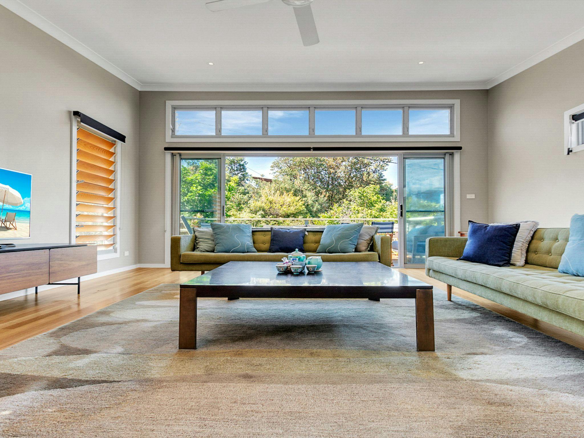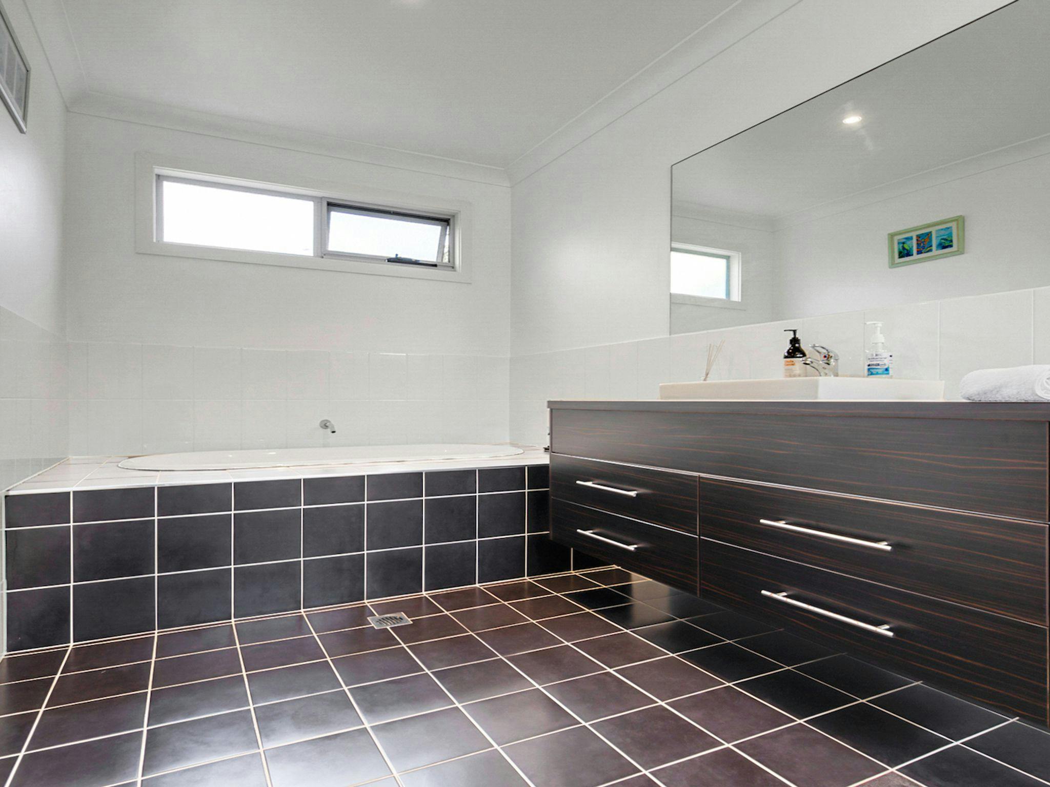 This spacious and light filled home will have you feeling relaxed the moment you walk in the door. On the ground floor, there are three large bedrooms with two queen, one king bed and a main bathroom with a luxurious sunken bath, shower, vanity and toilet. Also on this level is a separate toilet, laundry and second living area. This leads out onto the deck that runs along the side of the house and is great for entertaining with a large outdoor table and gas barbeque. If quiet enough, you may see the resident Bower bird tending to his bower in the garden.