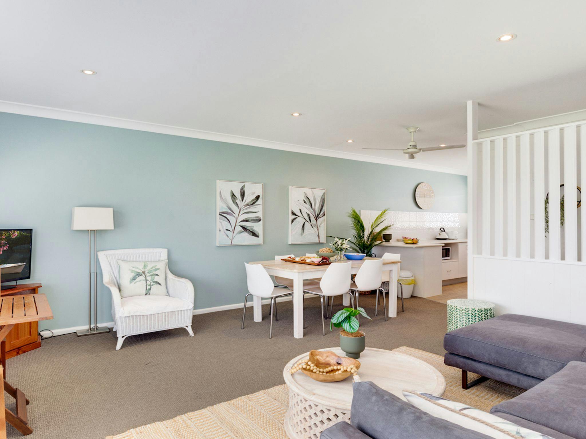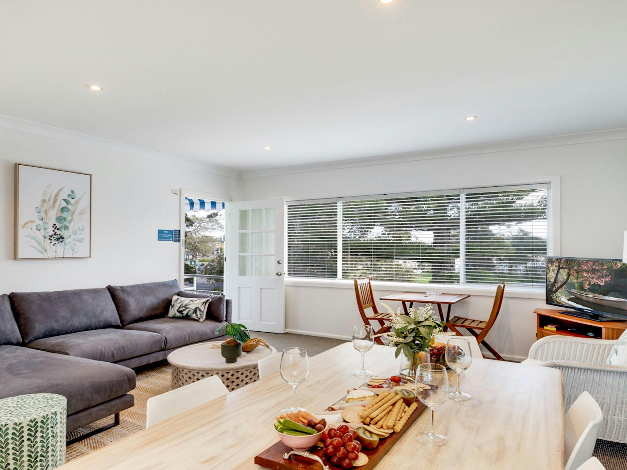 The living area is open plan with the dining combined.