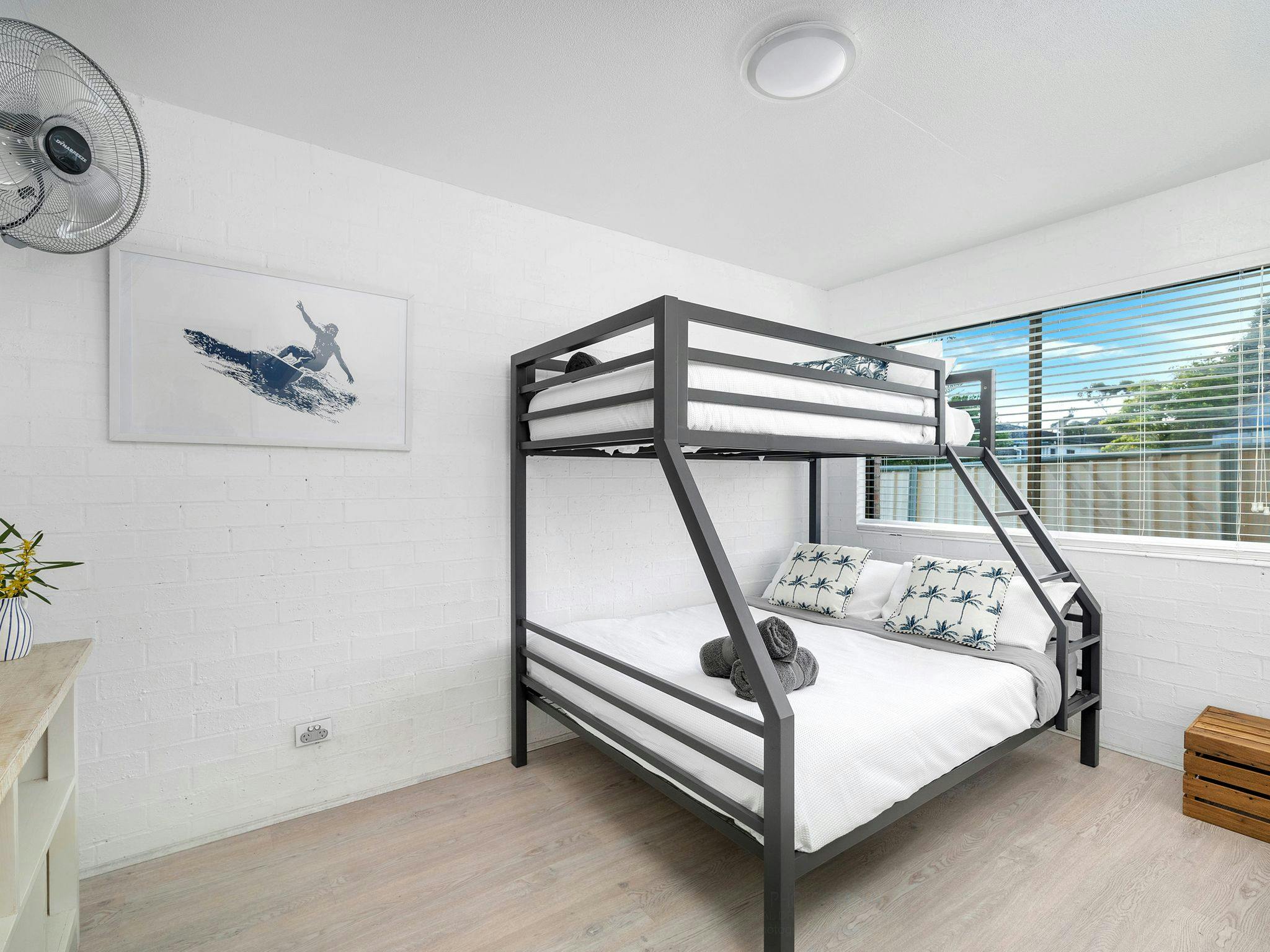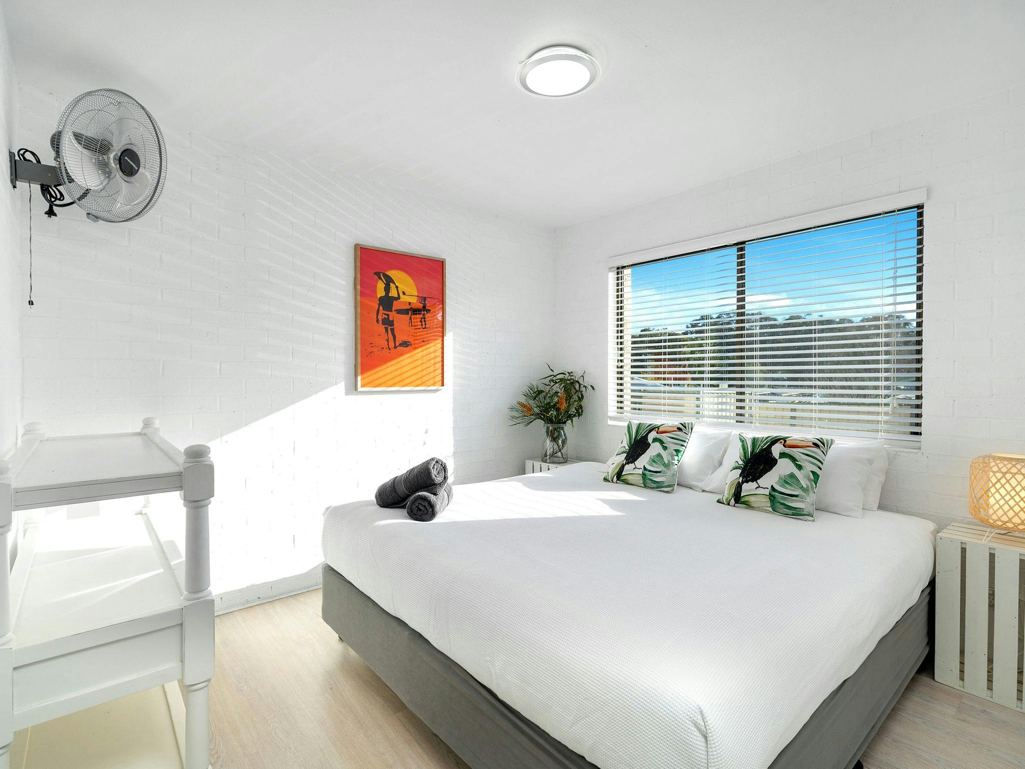Nestled between pristine forest, glistening white sand and the crystal clear waters of beautiful Jervis Bay lies a two bedroom apartment celebrating South Coast surf culture.