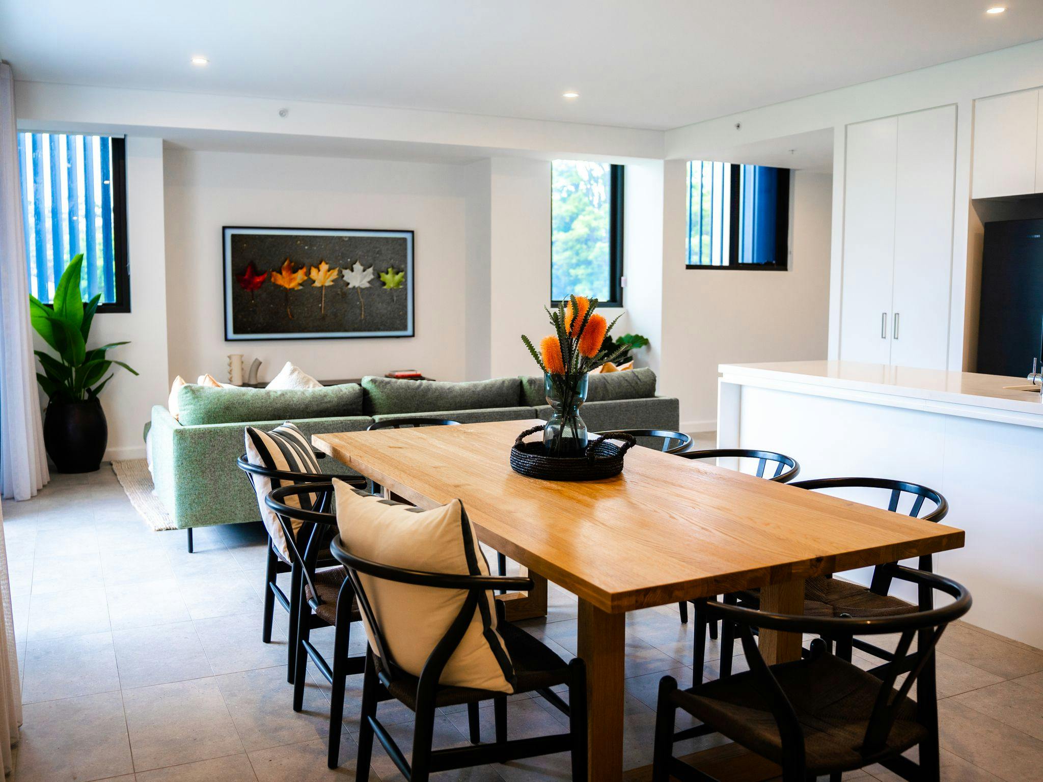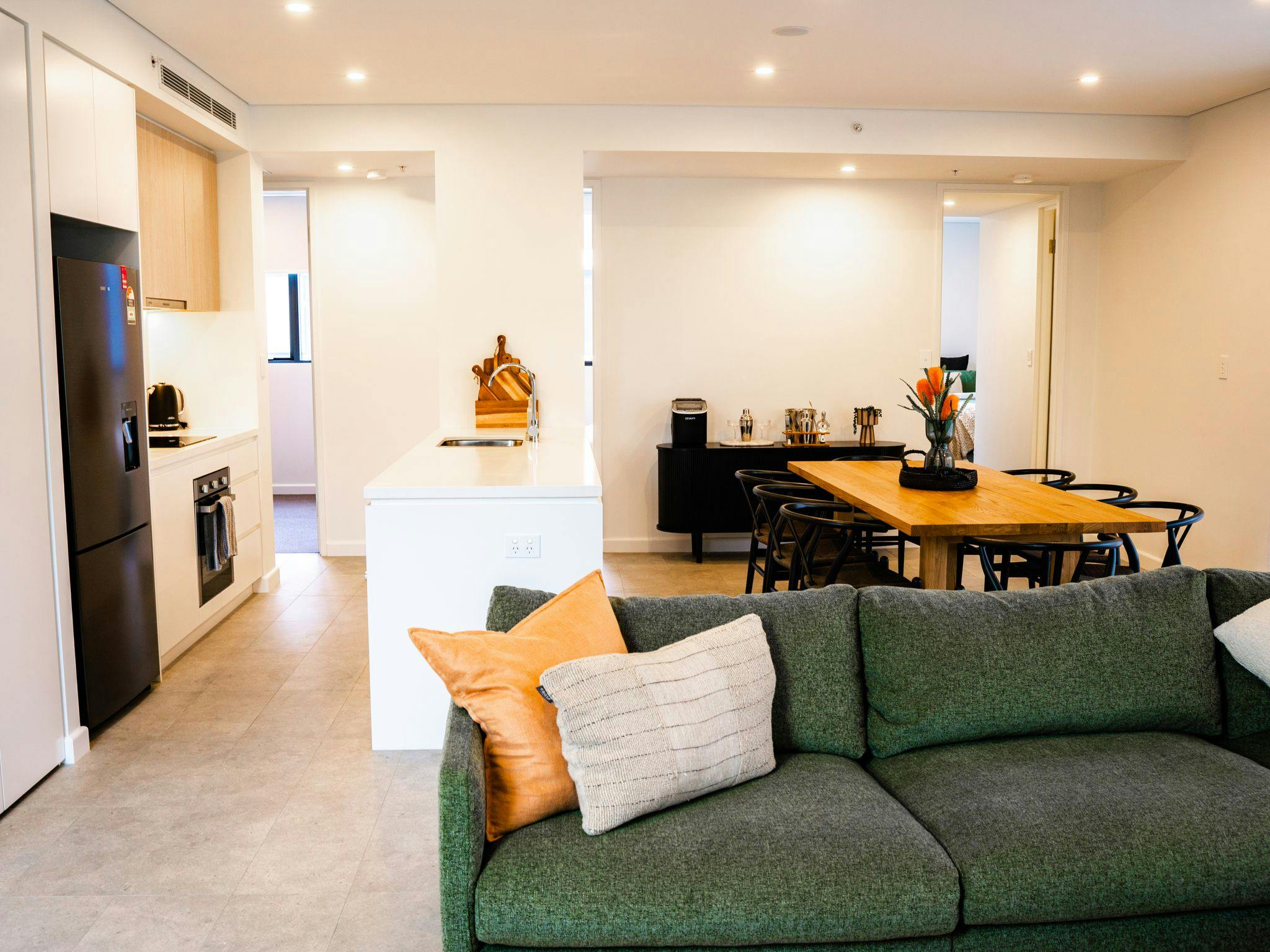 The fully equipped kitchen includes modern appliances like an electric cooktop, oven, dishwasher, and a pod coffee machine, along with essential pantry items. The open-plan dining area seats eight, while the lounge offers seating for five and includes a Smart television for entertainment. Outdoors, guests can enjoy a covered entertaining area, a secure yard, and a barbeque with seating for eight.