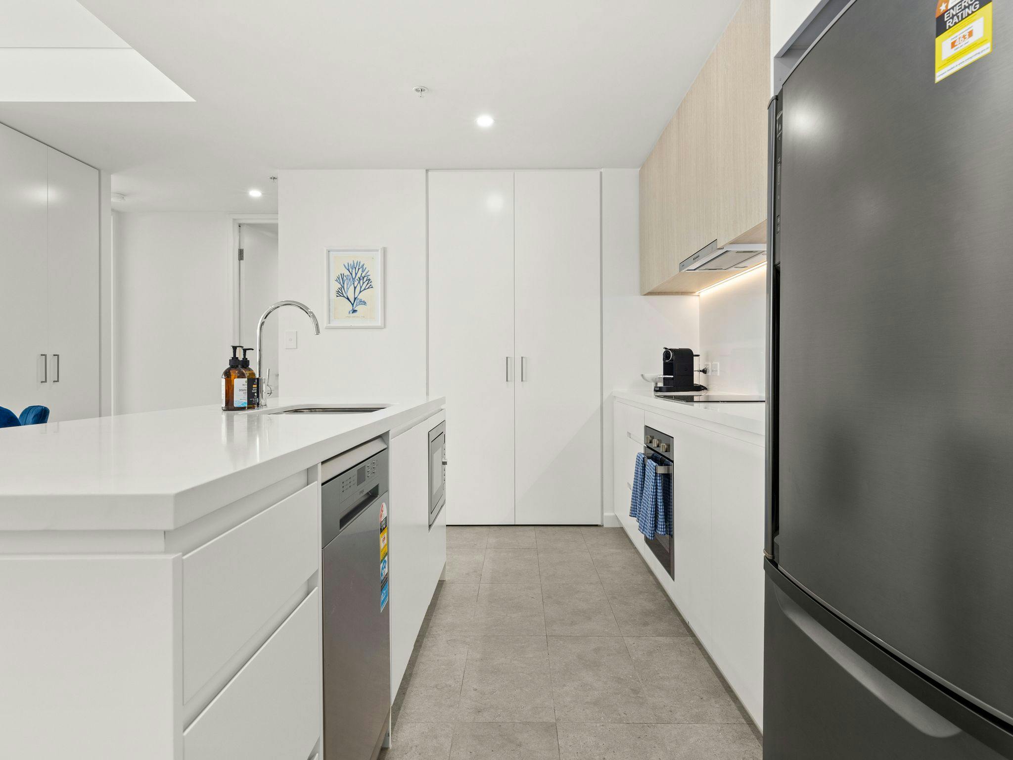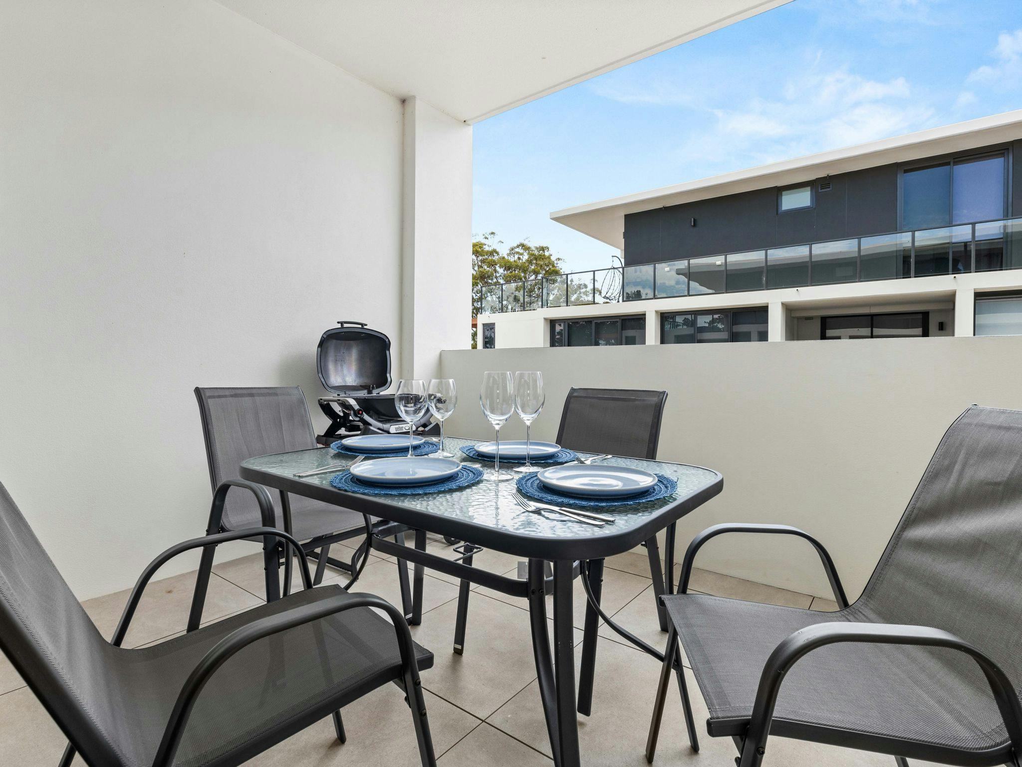 The open-plan living space offers a Smart TV, seating for five, and a well-equipped kitchen with modern appliances and a pod coffee machine. Outside, enjoy a covered entertaining area with a barbecue and dining for four, complemented by a secure yard for added privacy.