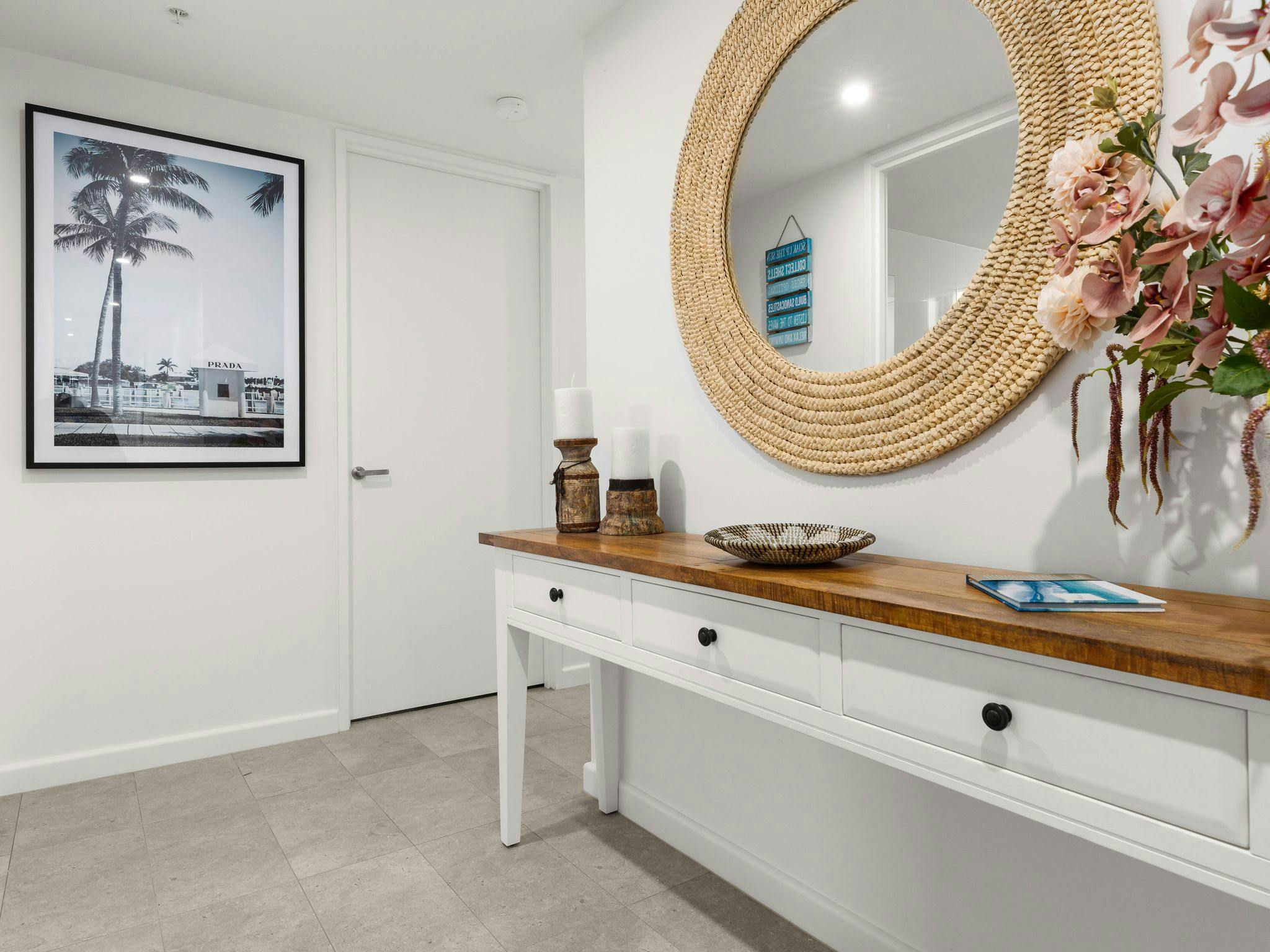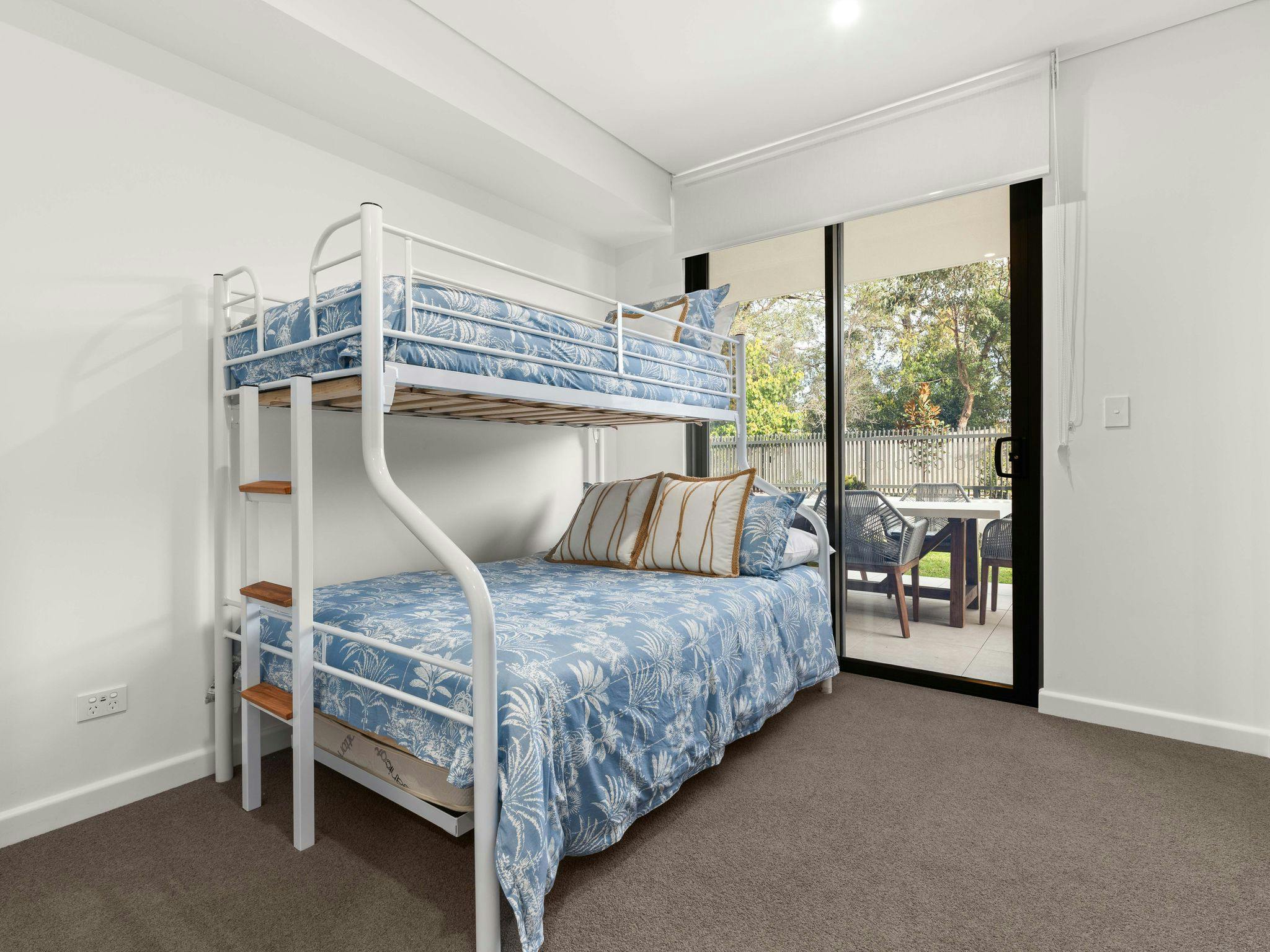 This modern two-bedroom home comfortably sleeps five guests. The master bedroom features a queen bed, ensuite, ducted air-conditioning, a smart television, and a built-in wardrobe. The second bedroom includes a tri-bunk (single on top, double on bottom) with ducted air-conditioning and a built-in wardrobe.