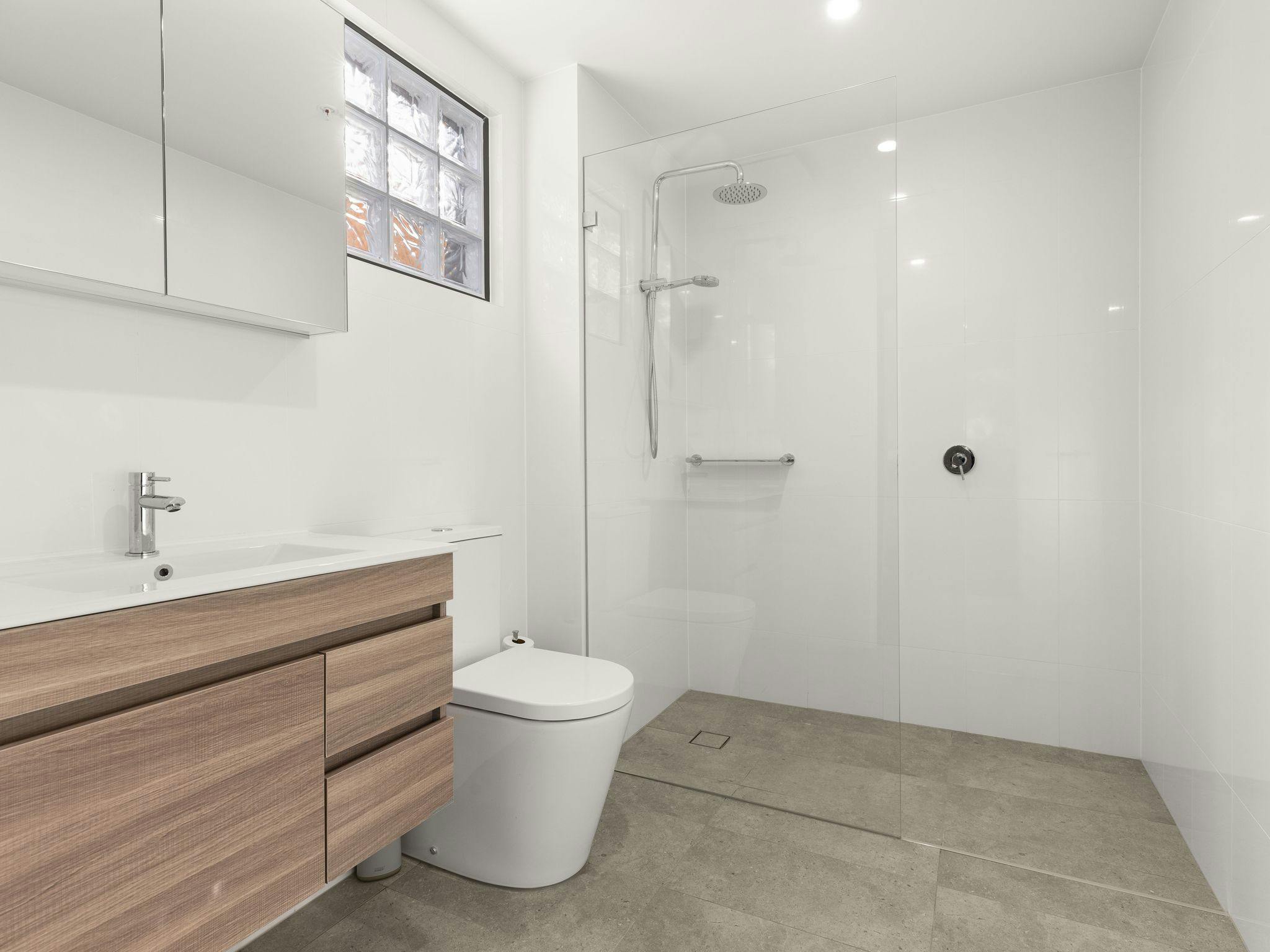 The home has two bathrooms: the main with a bath, shower, toilet, and vanity, and an ensuite with a shower, toilet, and vanity. Parking includes two garage spaces with a height limit of 2.05 metres.