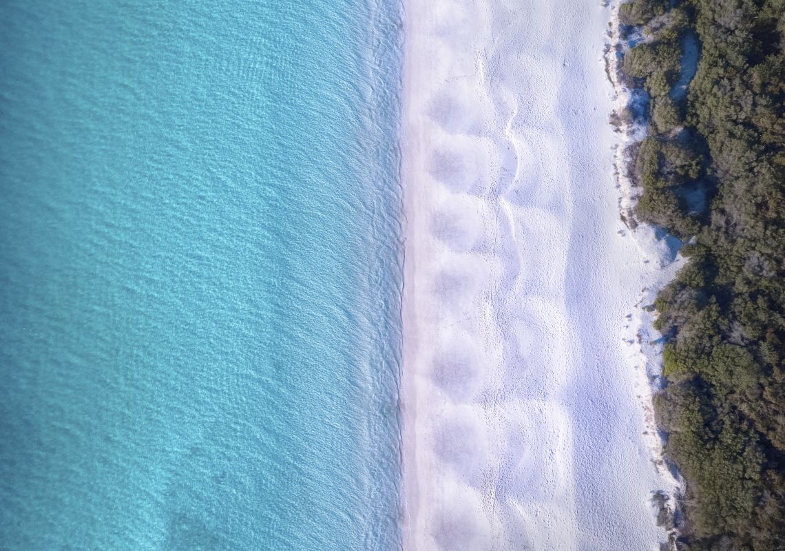 Scenic coastal views showing the white sand of Hyams Beach in Jervis Bay, South Coast
