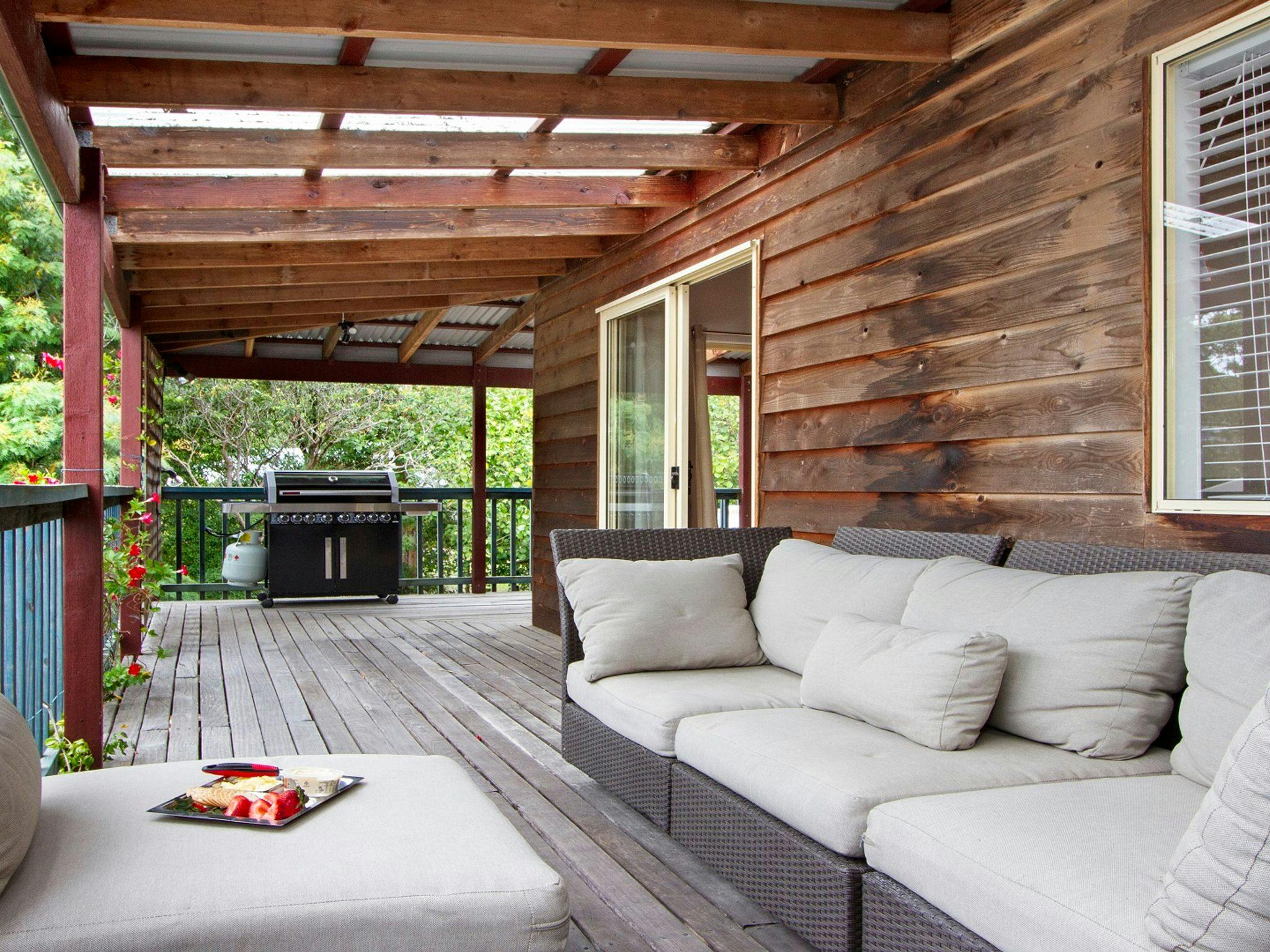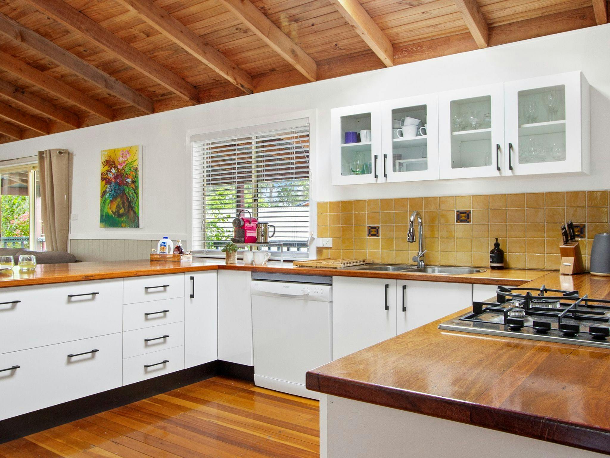 The upper level features three bedrooms, a main bathroom plus a separate toilet, open plan living with a central kitchen and a wide timber deck, offering outdoor living all year round. A fully equipped kitchen is a pleasure to prepare meals in or a family barbeque on the deck is always fun.