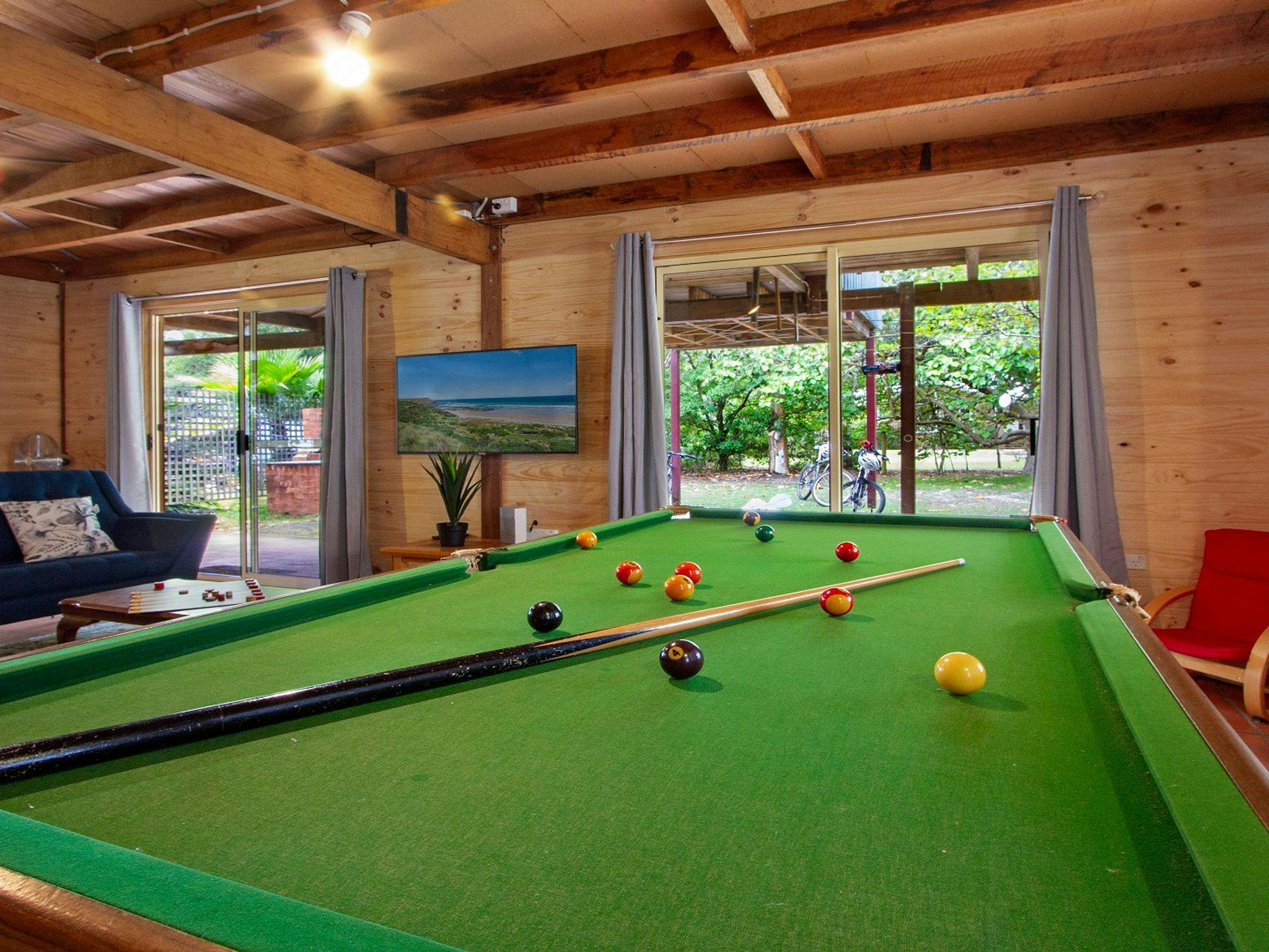 Like all Queenslander-style houses built on supporting poles instead of structural walls, the area downstairs offers a spacious games room with pool table, Television, lounging area and plenty of books to browse and games to play. There is also an extra bedroom as well as a combined bathroom and laundry on this level.