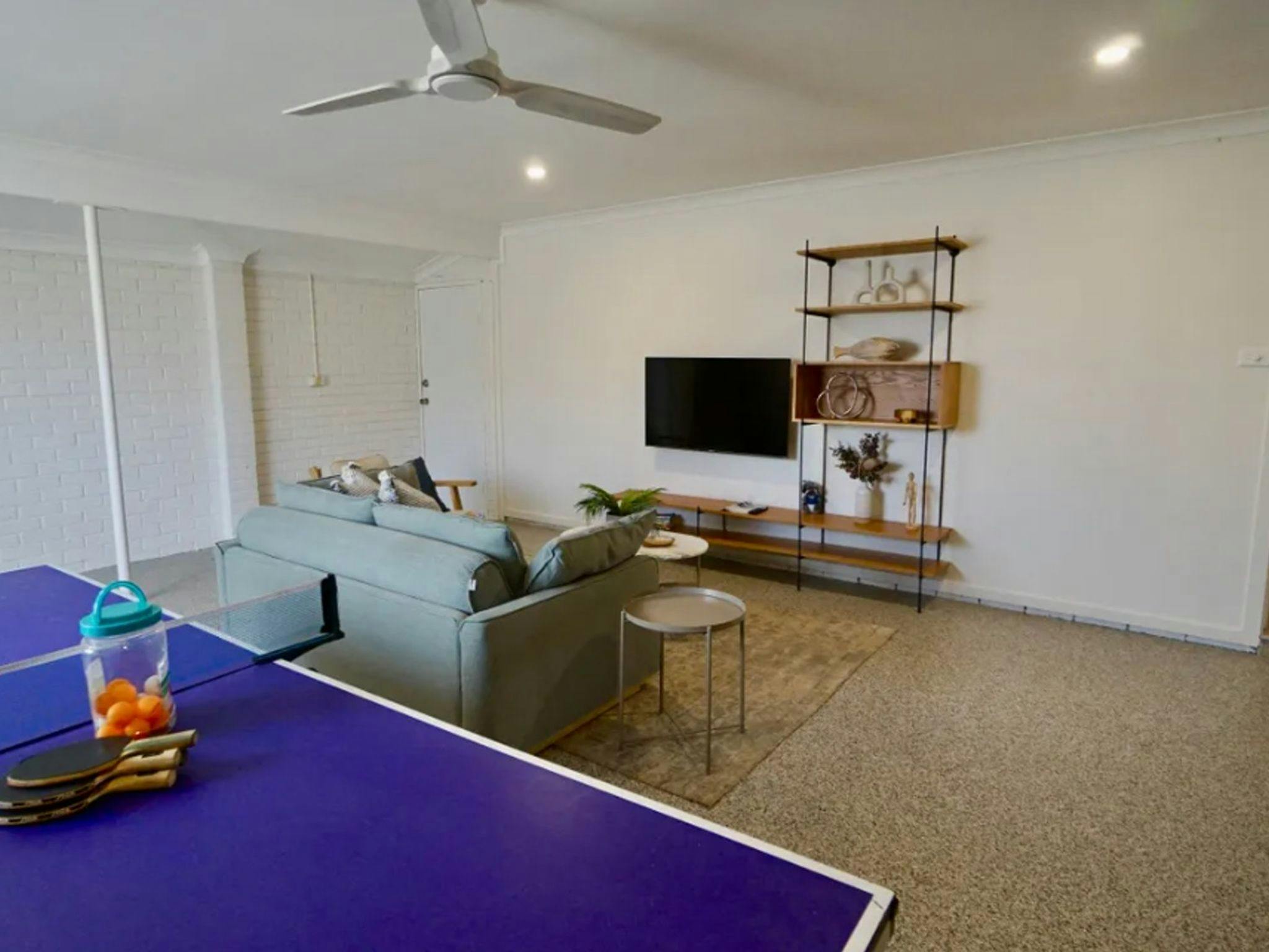 The property features spacious indoor and outdoor living areas, including a lounge with a smart TV and a rumpus room equipped with streaming services and a table tennis table. The fully equipped kitchen, complete with a pod coffee machine and essential pantry items, ensures effortless meal preparation. Outside, the covered entertaining area with a barbeque and dining space invites alfresco evenings, while the secure yard provides peace of mind for guests with pets.