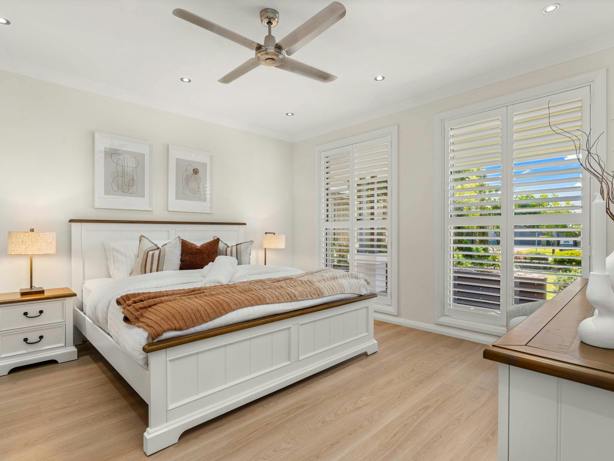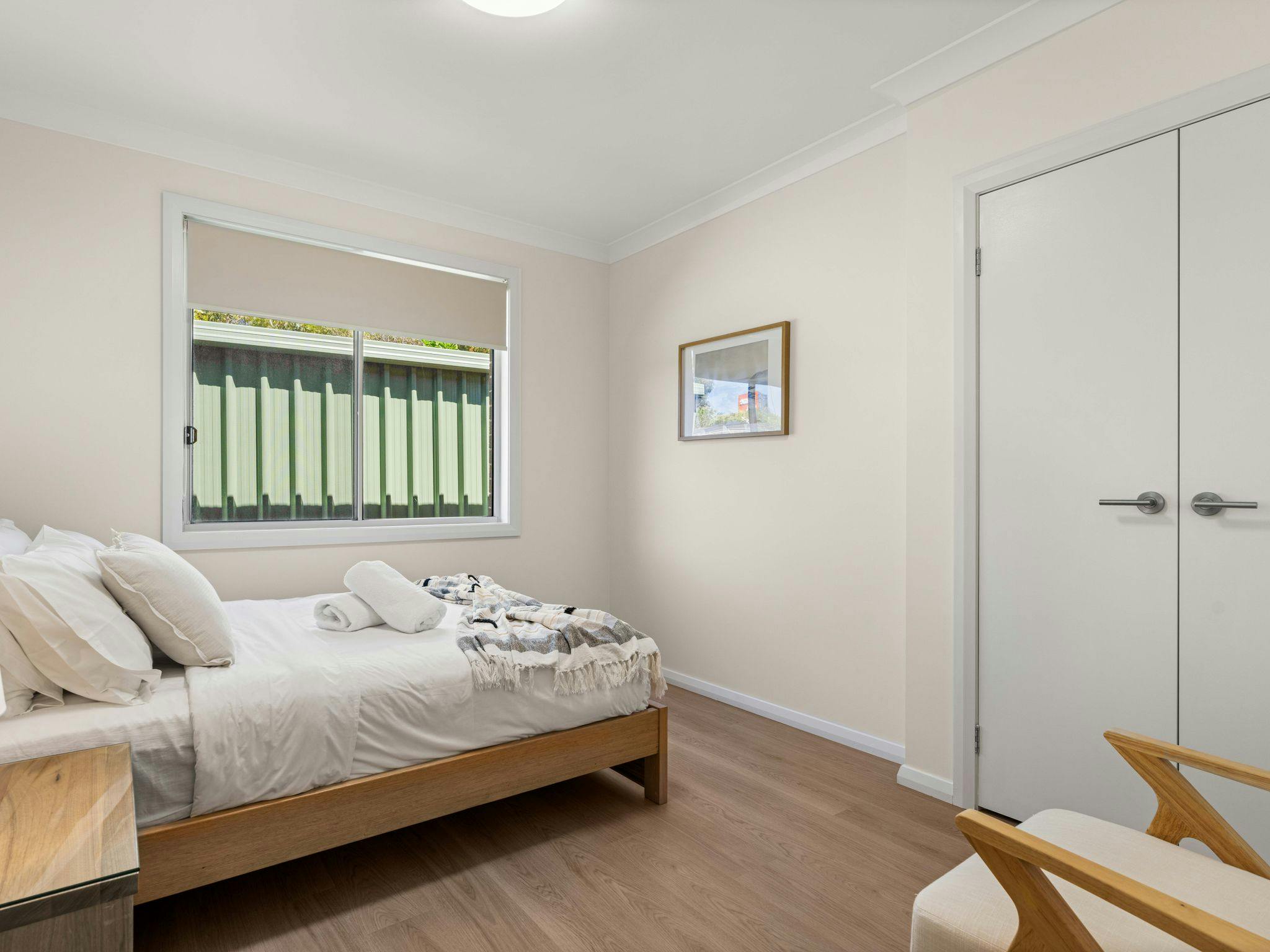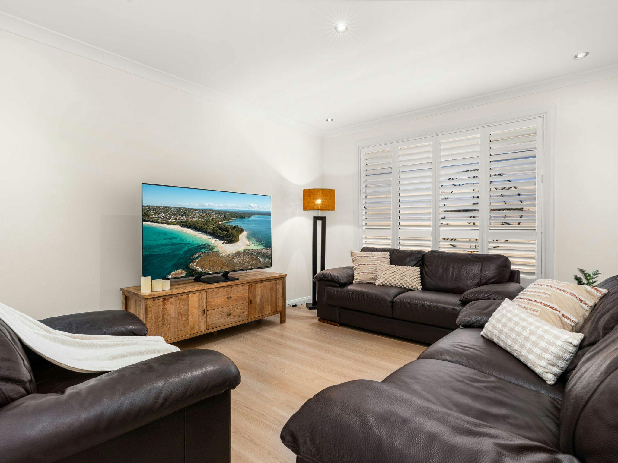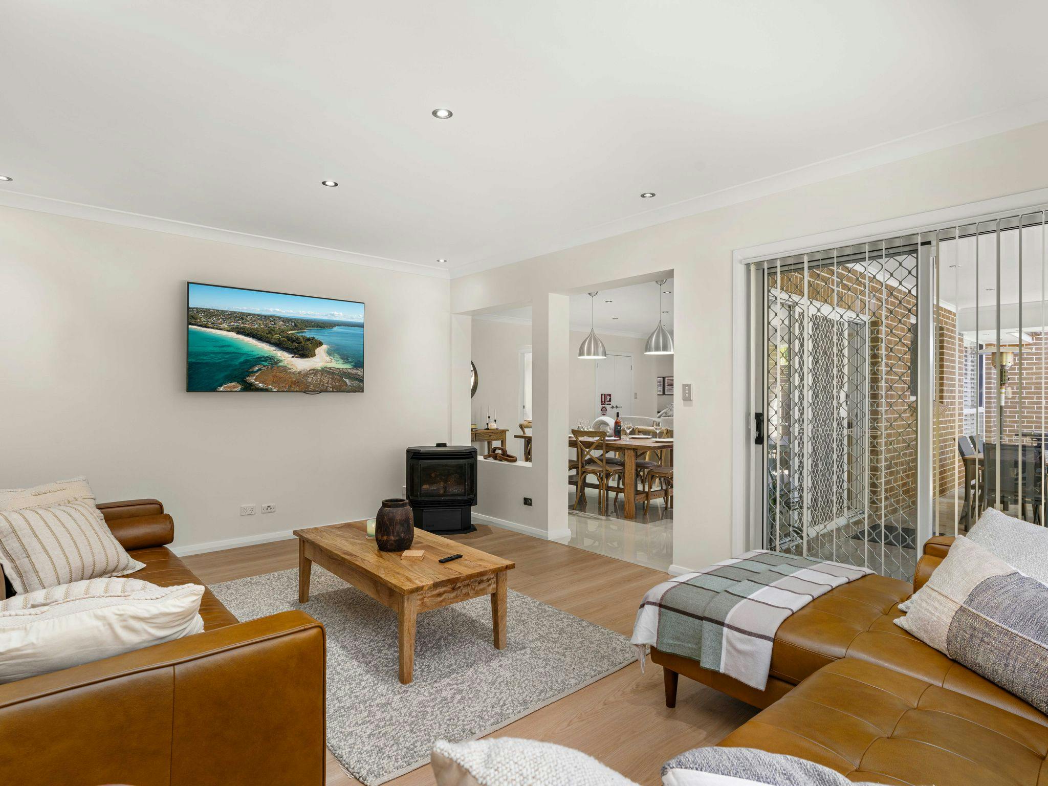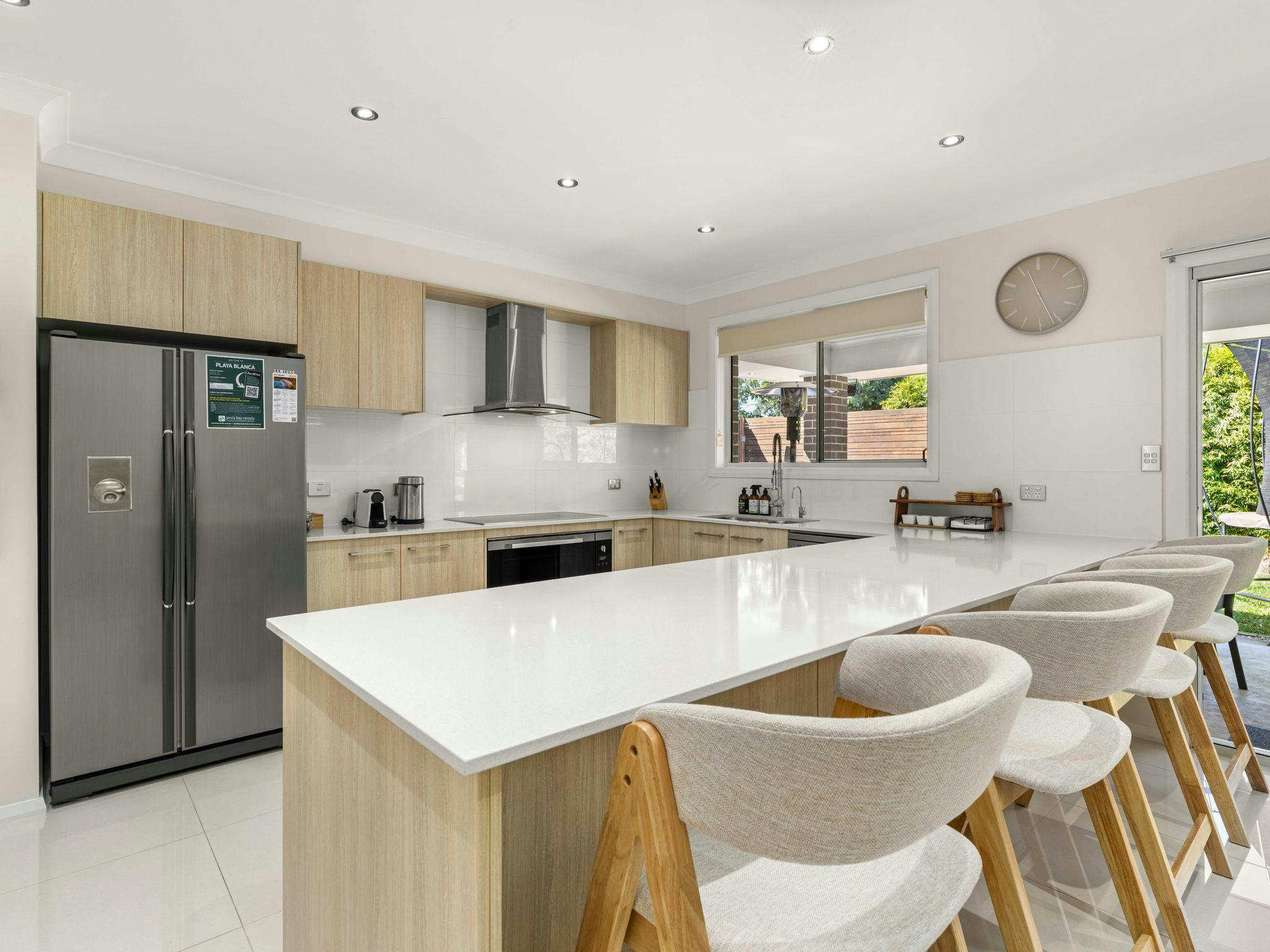 Playa Blanca is a stylish coastal retreat in the heart of Vincentia, offering comfort and space for up to 8 guests. With four well-appointed bedrooms, two living areas, modern bathrooms, and a fully equipped kitchen, it’s designed for both relaxation and family fun. Ducted air-conditioning upstairs, portable heating and fans downstairs, plus a secure yard, trampoline (with supervision), and covered outdoor dining with BBQ make it easy to enjoy time together year-round.