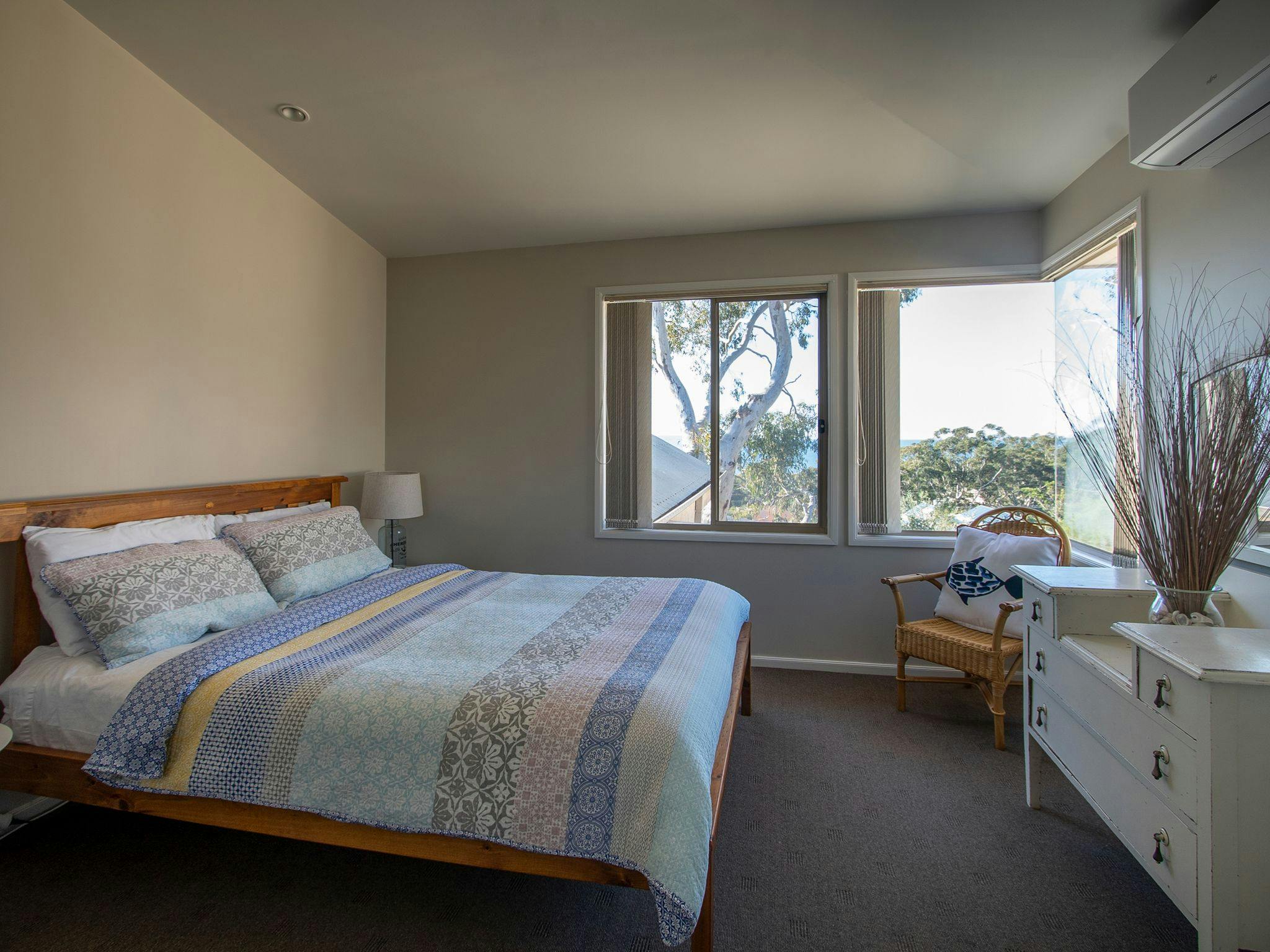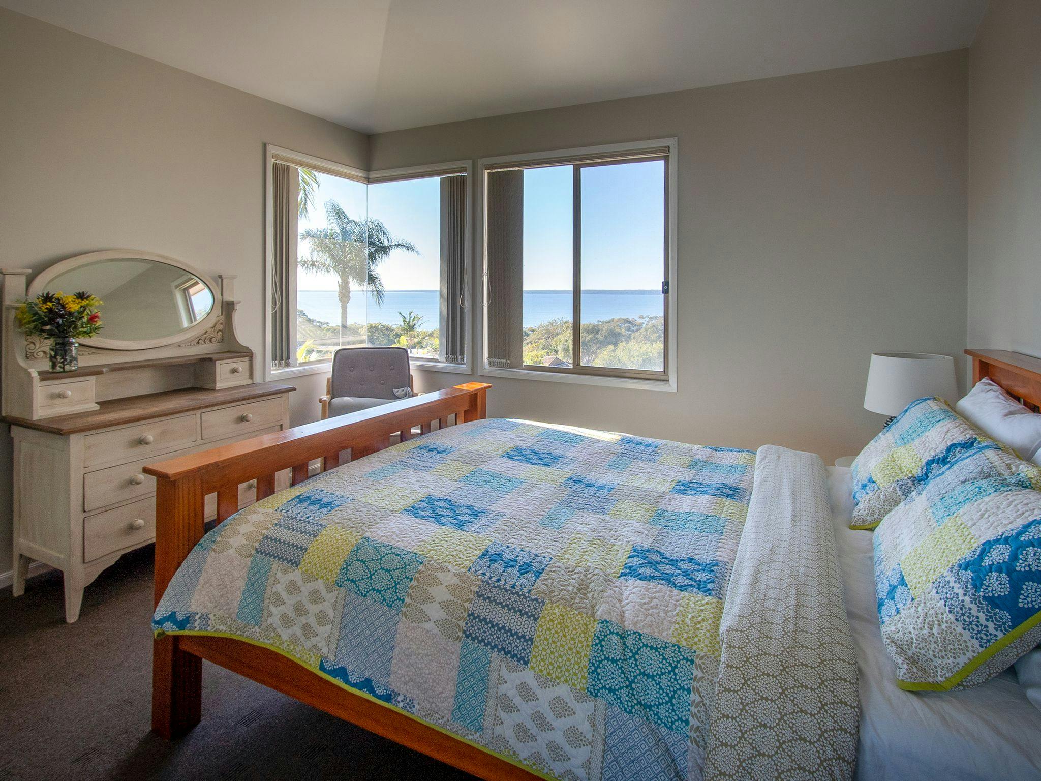 Seaglass Jervis Bay is a spacious and luxurious holiday home, perfect for families and groups of friends. This stunning property boasts five bedrooms, each with comfortable bedding and modern amenities. The well-equipped kitchen and dining area are ideal for preparing delicious meals and entertaining guests. Step outside to the outdoor entertaining area and enjoy a barbecue while taking in the beautiful surroundings. With its prime location, just a short distance from pristine beaches and local attractions, Seaglass Jervis Bay offers the perfect blend of relaxation and adventure.