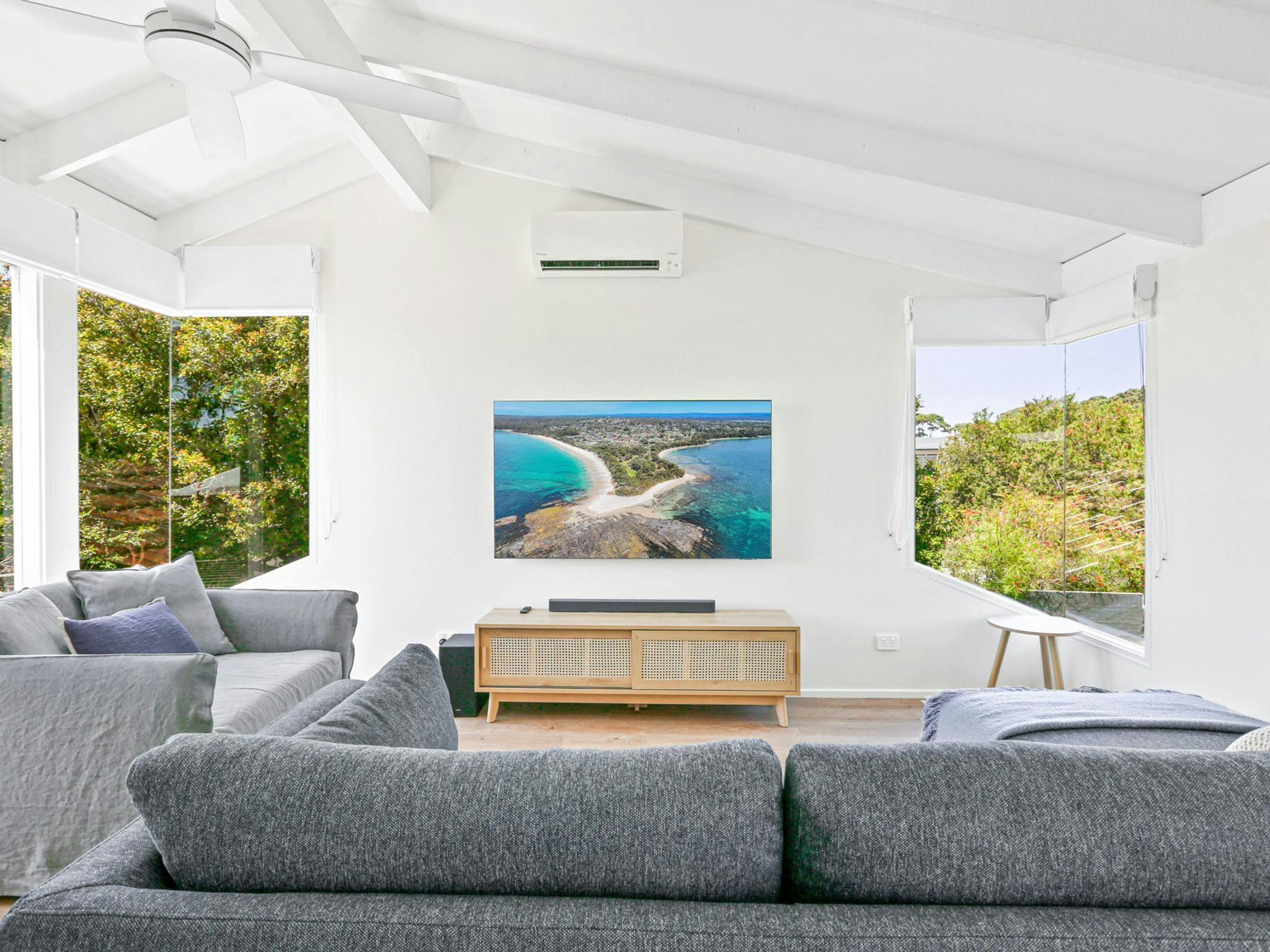 Escape to Sunrise Point Beach House, a pet-friendly retreat near Nelsons Beach in Jervis Bay. This charmingly renovated holiday haven welcomes up to six guests, ideal for families and friends seeking coastal relaxation.