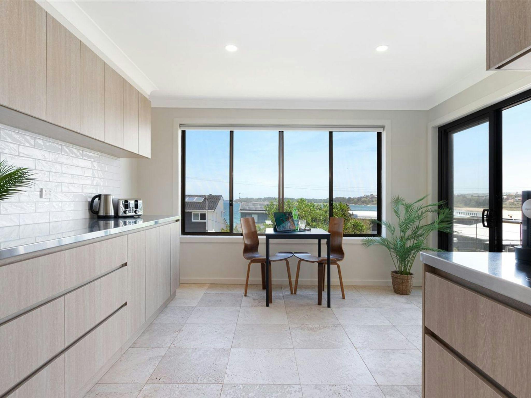 The living area and kitchen on the first floor feature spectacular ocean views and flow seamlessly to the porch, making it the perfect spot to relax. A fully equipped kitchen with a dishwasher, microwave, and Espressotoria coffee machine ensures meal prep is a breeze, while the slow-combustion fireplace adds a cosy touch for cooler evenings.