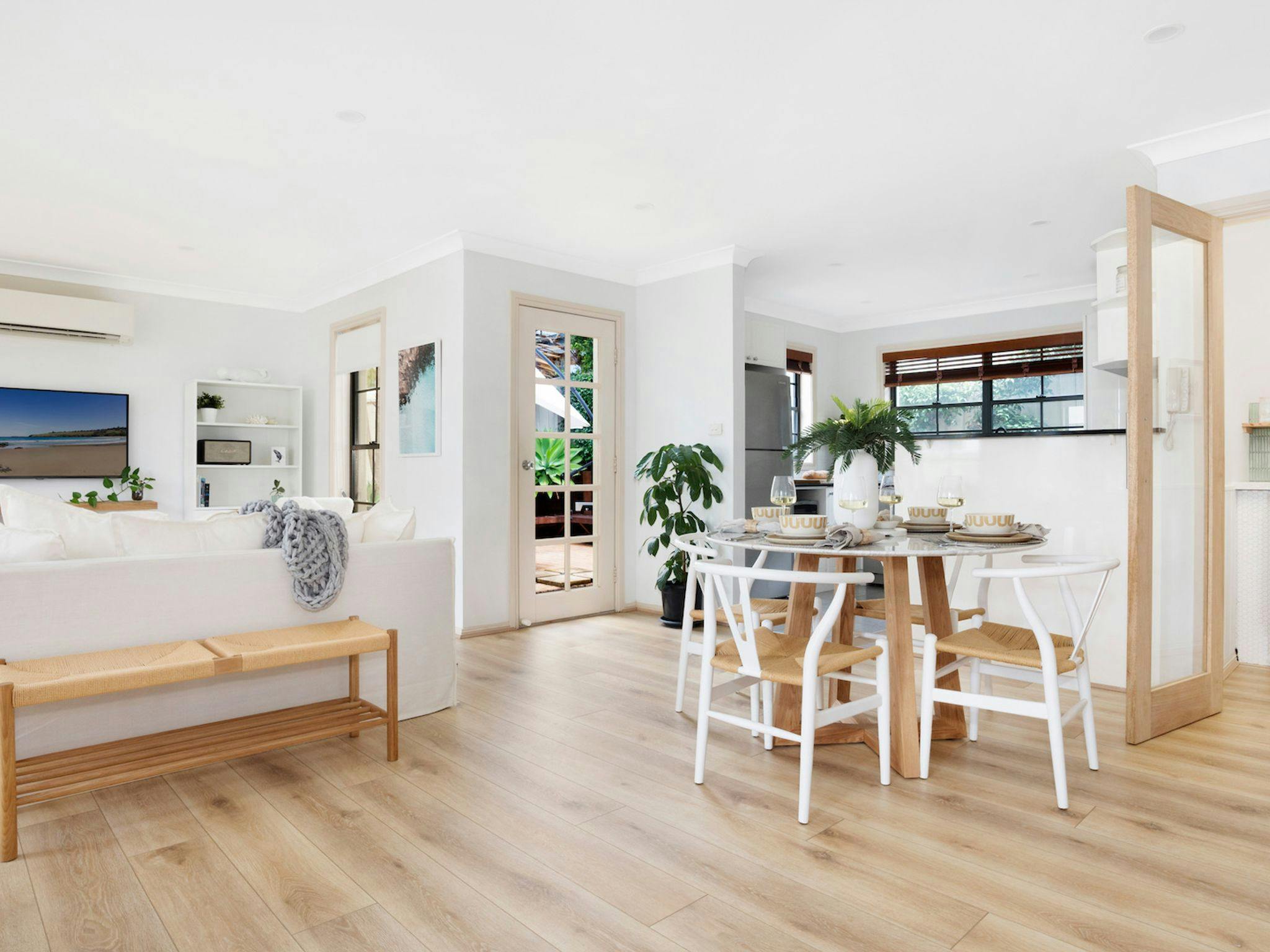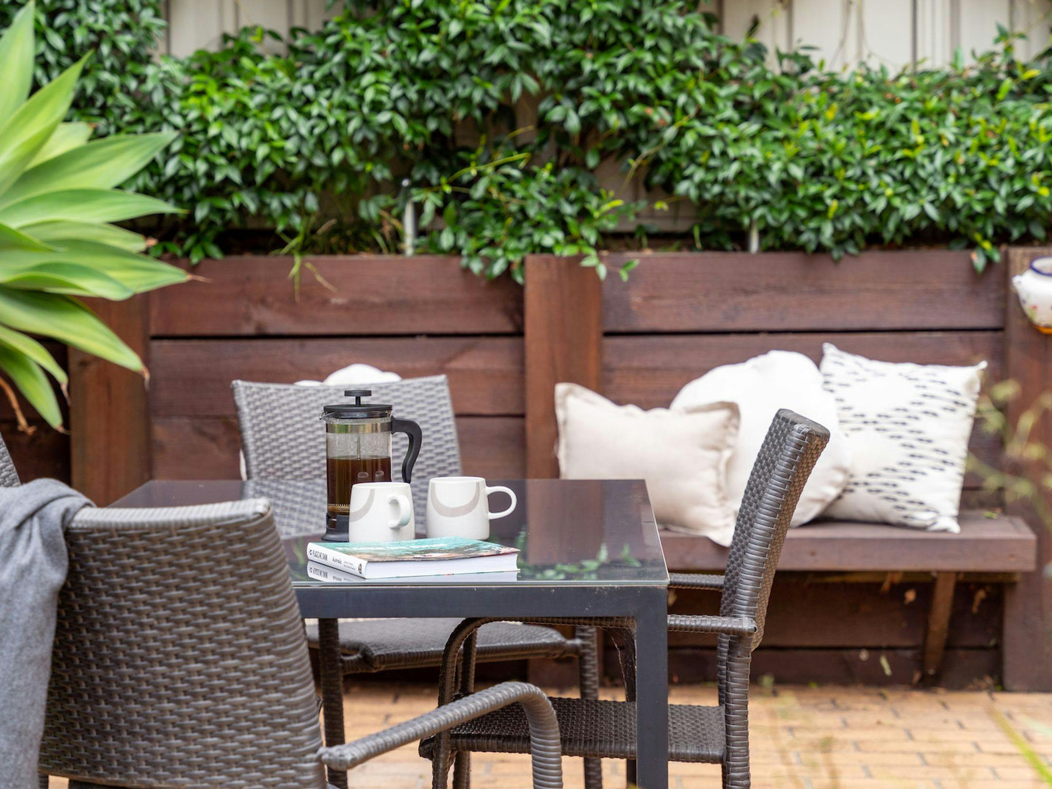 This light and airy coastal house is beautifully styled, thoughtfully furnished, and designed with relaxation in mind. With two bedrooms and two bathrooms, this stay is ideal for couples or small families. Palm Breeze features a fully equipped kitchen and a furnished outdoor dining area with gas barbeque, making this home an entertainer's dream. The cosy home office is a fantastic addition, making this stay ideal for remote workers. The bedrooms are generously sized and lovingly decorated, and the rest of the interior is finished with chic coastal furnishings and décor.