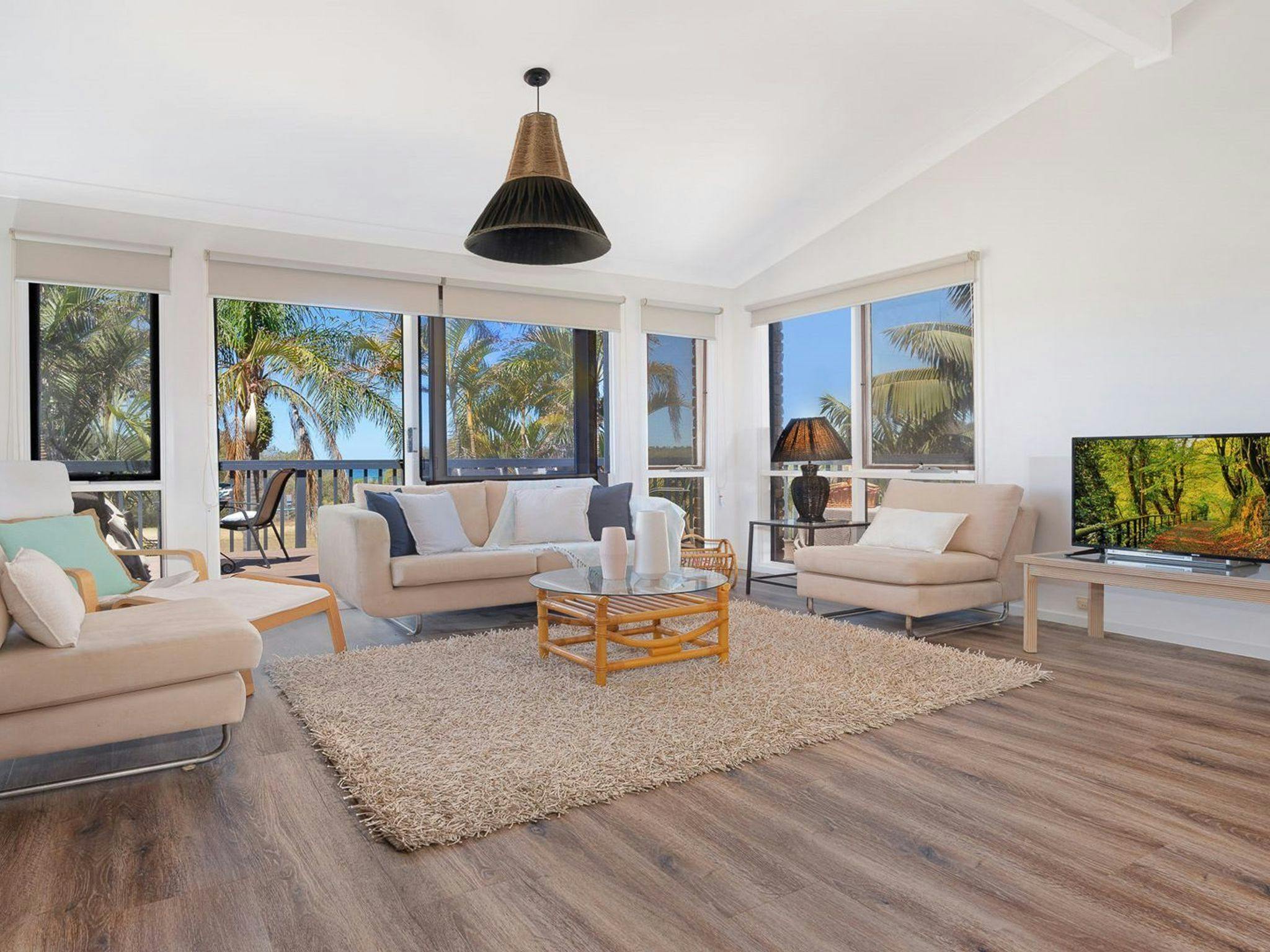 Throw on your swimmers, grab your towel and sunscreen and walk straight from the back door to the golden sands of Jones Beach. This absolute beachfront home has space for the whole family to have a fantastic beach breakaway.