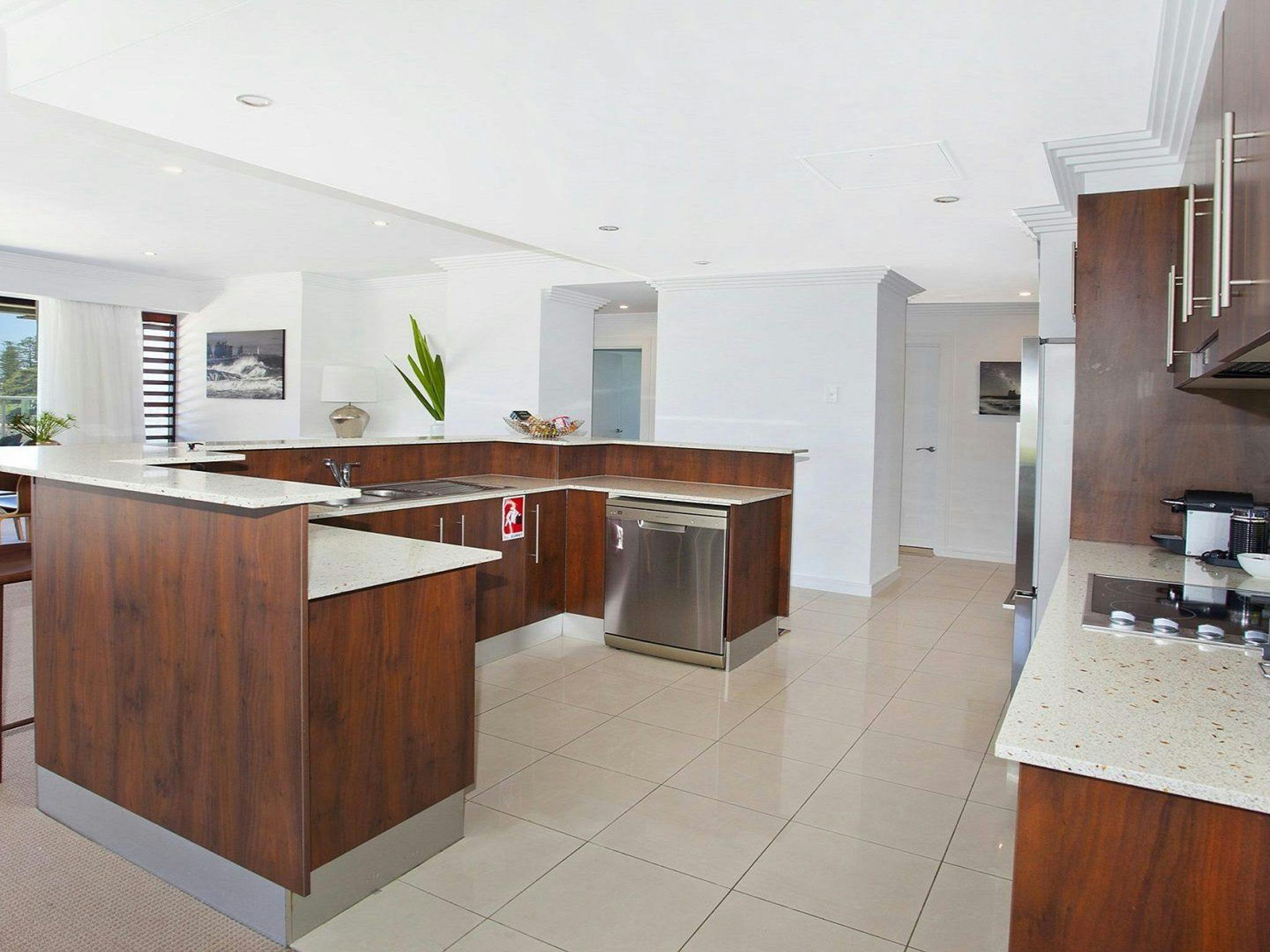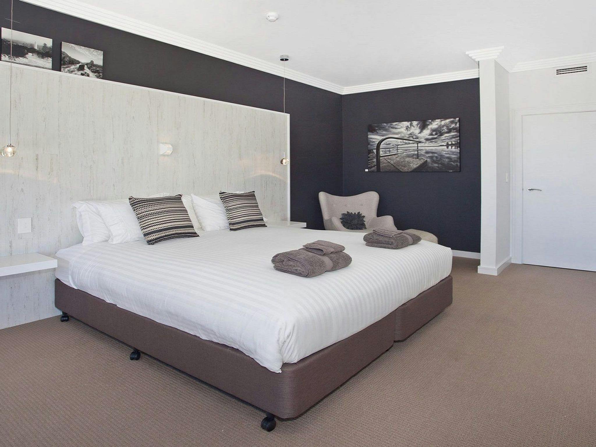 The open-plan living area is filled with natural light and overlooks the Sebel Hotel's gardens, while the stacker doors bring the sunshine into the kitchen and dining area. The large living area is luxurious with King Furniture lounge, a large flat-screen television and DVD player.