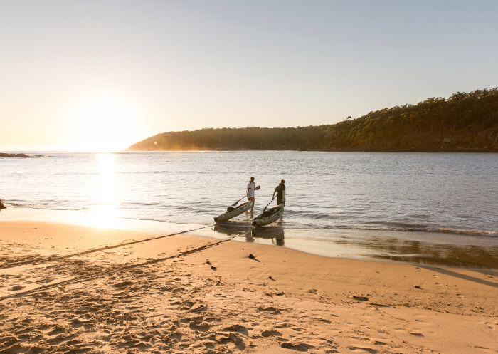 Wake to the sound of waves at Discovery Parks - Pambula Beach, which is just steps from the sand. There are many stylish holiday houses to choose from or sleep in a piece of local history at The Historic Grange, an Edwardian-era manor house, and The Oaklands Homestead, built in 1847. Get away from it all at Currajong Retreat, with luxury glamping tents on a working goat farm.