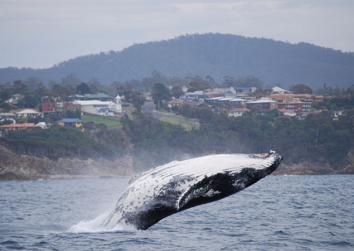 Take a cruise with Cat Balou who depart from Twofold Bay in Eden or Sapphire Coastal Adventures (Merimbula Marina) who will operate during the season in Eden and Bermagui. You can be on the migration path within minutes of leaving port. Most guides offer guaranteed encounters between September and early November. Look out for common and bottlenose dolphins, seals, penguins, sunfish and turtles as well.