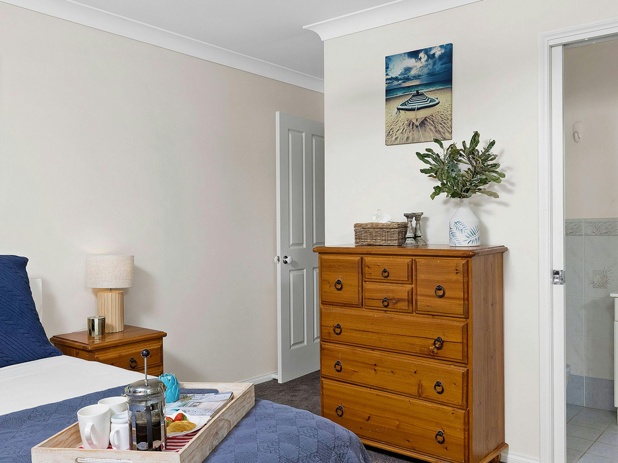 Fall asleep listening to waves crashing from the master bedroom, which has a comfortable queen size bed with an ensuite and ceiling fan. Here you can escape from the kids and catch up on some holiday viewing. The generous second bedroom has a queen-sized bed with a ceiling fan, and the third bedroom offers two sets of single bunks. All rooms have built-in robes.