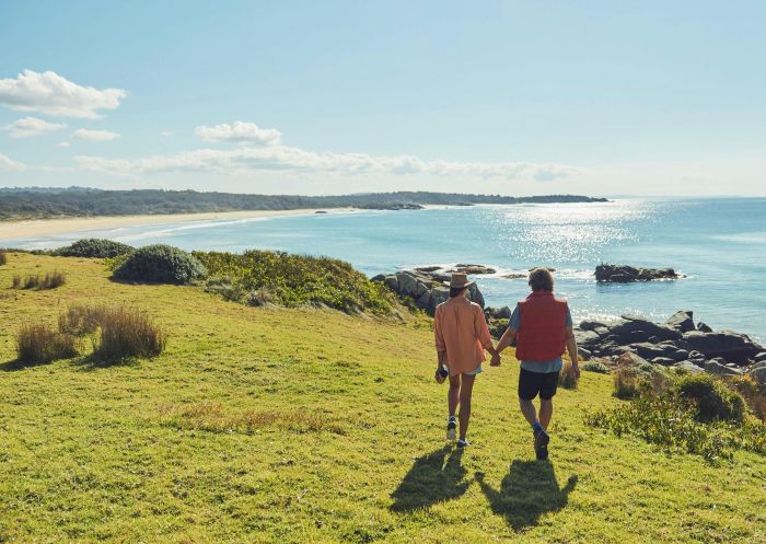For tens of thousands of years, the Bundian Way offered a safe path between the high country of the Snowy Mountains and the ocean of the Sapphire Coast for local Aboriginal people of the area, Yuin, Ngarigo, Jaitmathang and Bidawal Country. Covering 365 kilometres, it allowed many different groups to meet for important ceremonies. Today, you can follow a short 1.8-kilometre section of the trail to gain an insight into these ancient interactions, guided by interpretive storyboards and backdropped by stunning vistas.