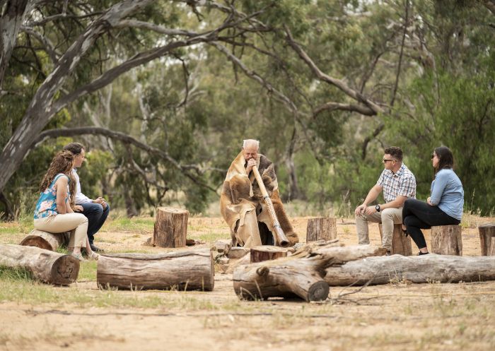 Running alongside the Murray River, the 15-kilometre Wagirra Trail is a popular track for walking and cycling, and links the Wonga Wetlands and Gateway Island, a nature strip and cultural hub (both the Burraja Indigenous Cultural and Environmental Discovery Centre and the Albury Wodonga Farmers Market can be found here) between Albury and Wodonga on Wiradjuri land. The Yindyamarra Sculpture Walk makes up a 5km  stretch of the path and is lined with 15 striking sculptures created by contemporary Aboriginal artists to tell age-old Aboriginal stories. Learn more about the local Wiradjuri language and cultural history of the area with a Giilangyaldhaanygalang (a Wiradjuri women-owned organisation) guided tour around the area.