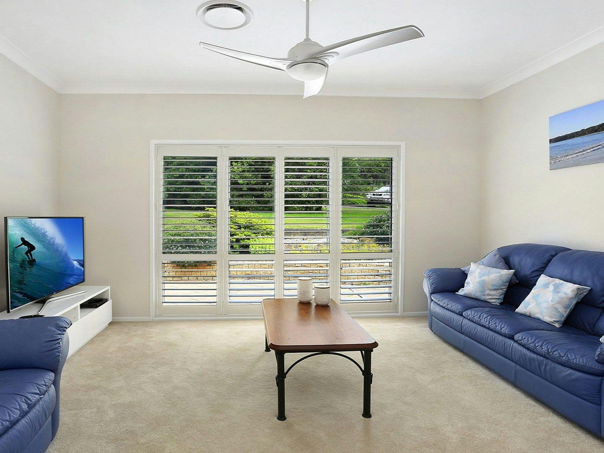 Misty Creek, set back on a battle-axe/cul-de-sac just 750 metres from town, offers both privacy and proximity to town. It has a vast grassy back lawn that backs onto just where the Caalong Creek opens into a private lagoon. It is perfect for yabbying, canoeing, duck-watching and, if lucky, even an occasional platypus sighting. This is relaxed holidaying amongst nature at its best with civilisation at your doorstep!