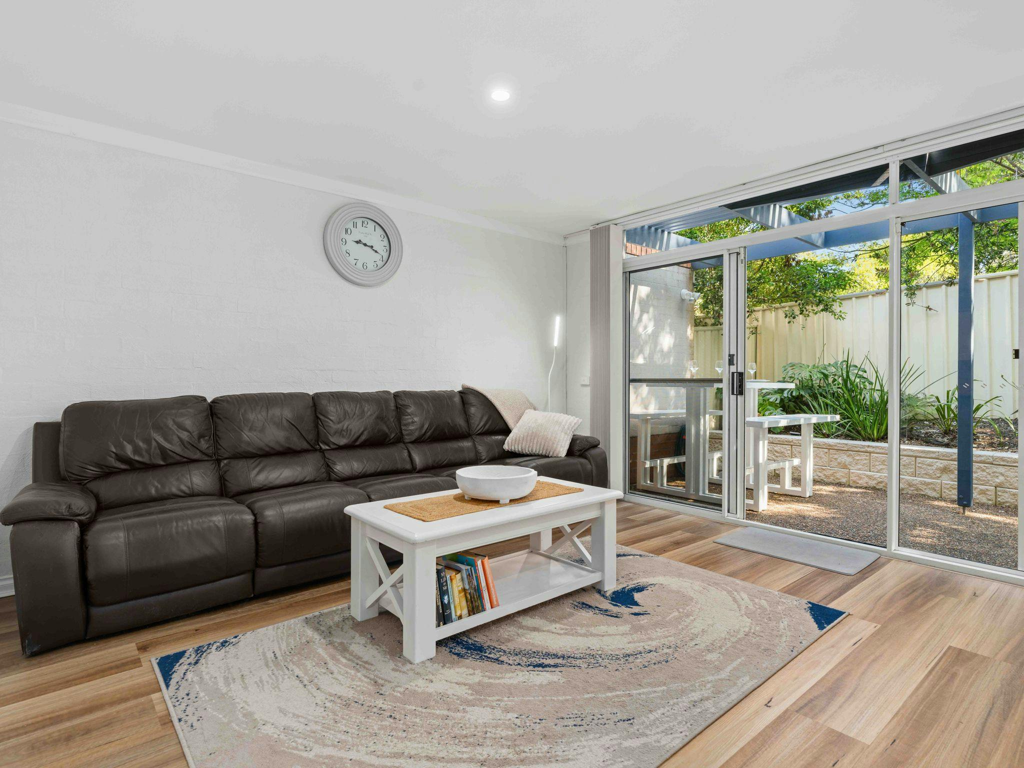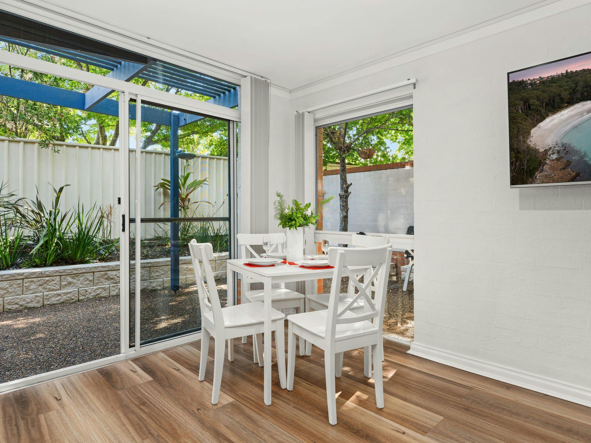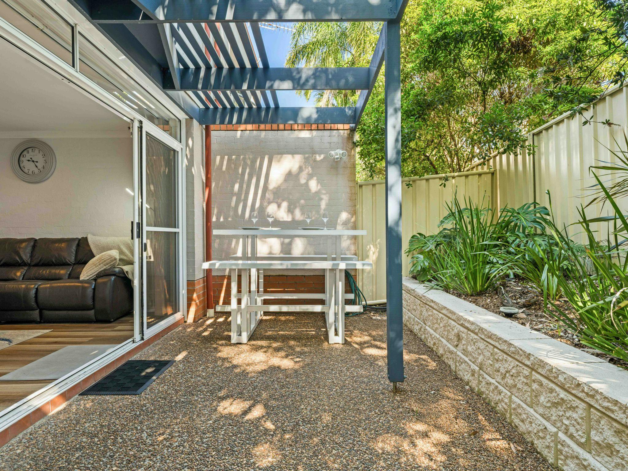 Vandy’s Valhalla offers a bright and comfortable retreat in the heart of Huskisson, perfectly placed for guests wanting easy access to beaches, shops, and the relaxed coastal lifestyle of Jervis Bay. Sleeping four, the townhouse features two well-appointed bedrooms—one with a queen bed and one with a double—each equipped with pedestal fans and built-in wardrobes. The main bathroom includes a shower, vanity, and toilet, with an additional separate toilet for convenience. The living and dining areas provide comfortable seating for four, a Smart TV, and a selection of board games, leading into a functional kitchen complete with a pod coffee machine, electric appliances, and essential pantry items.