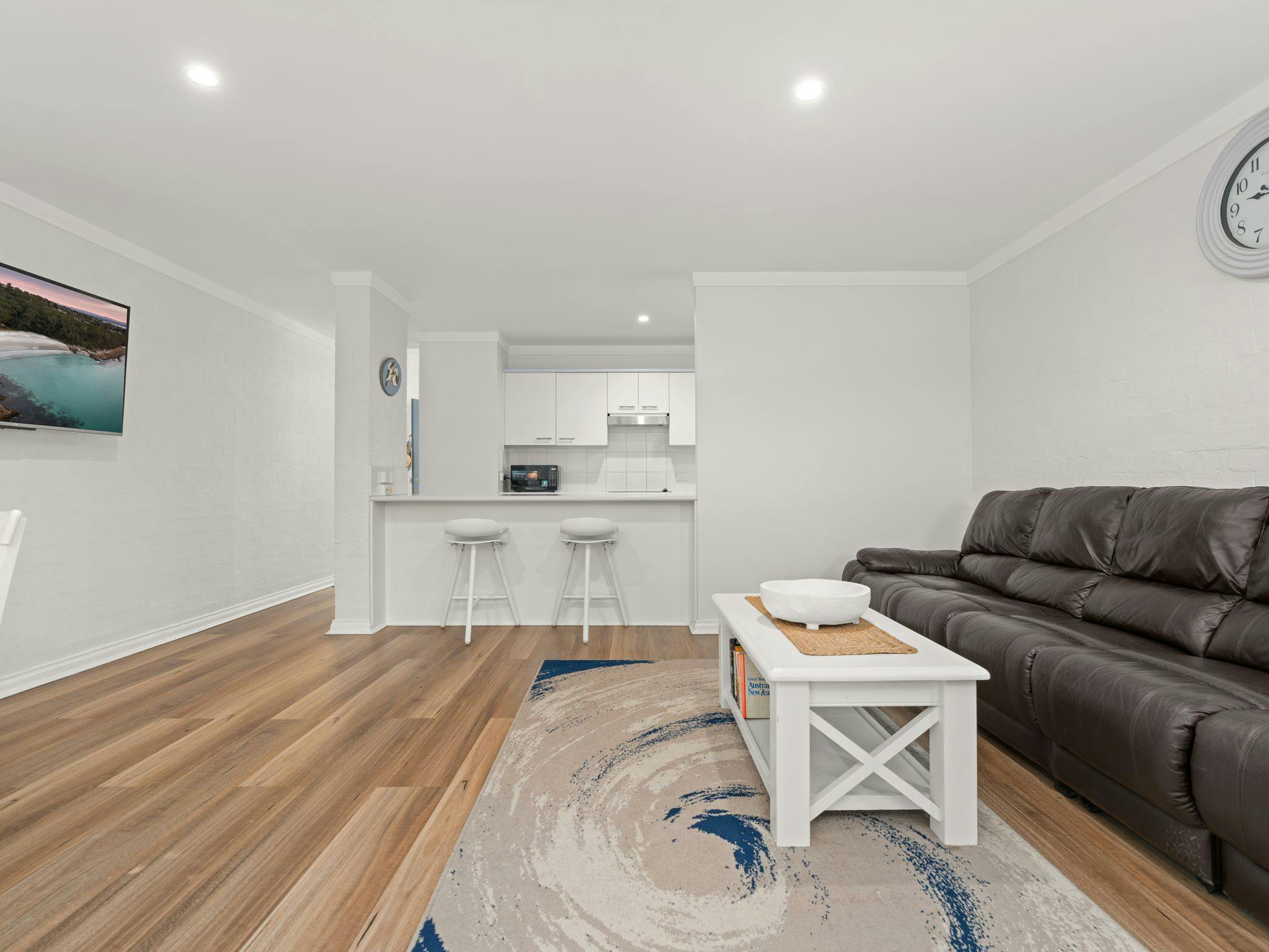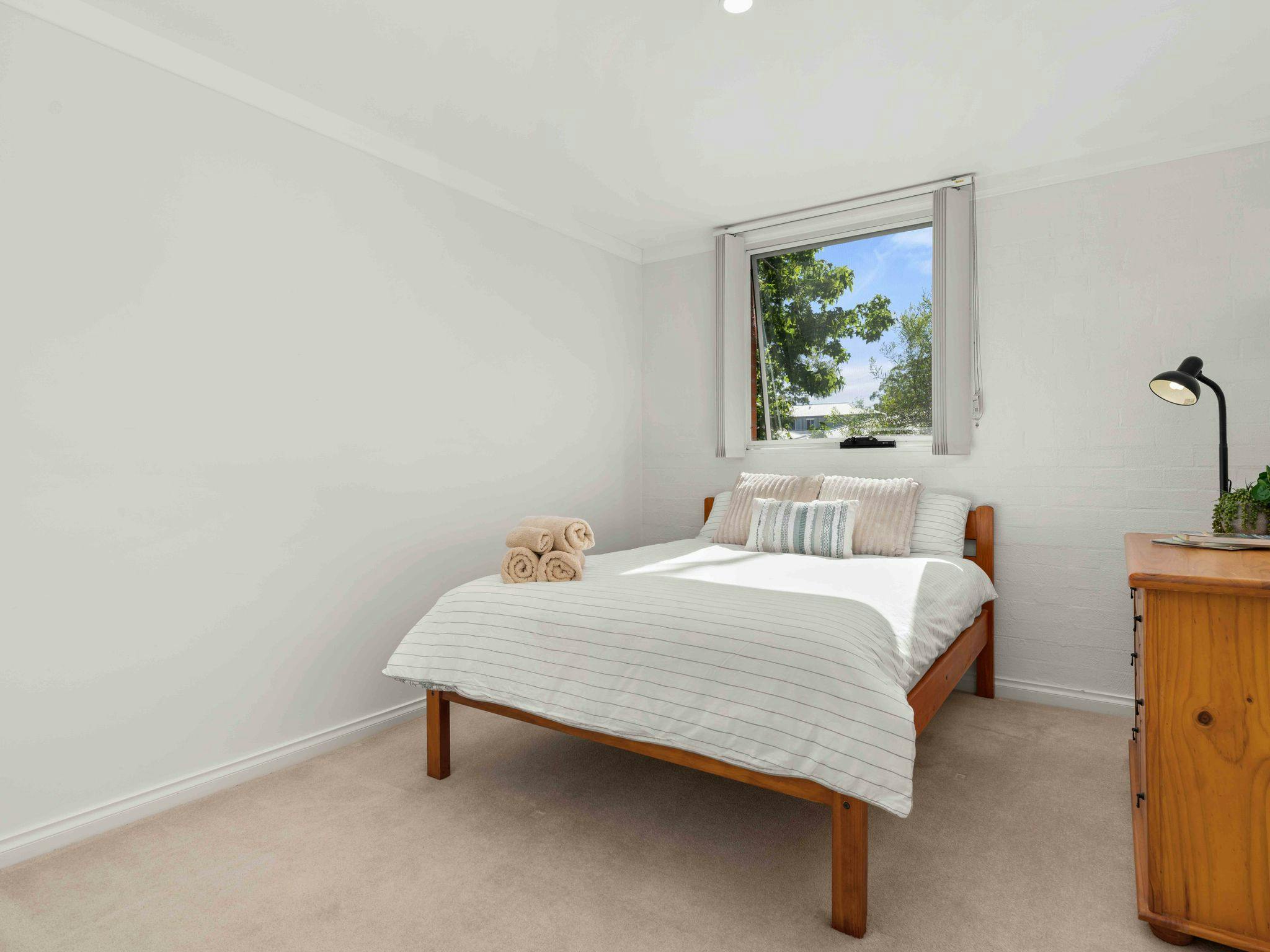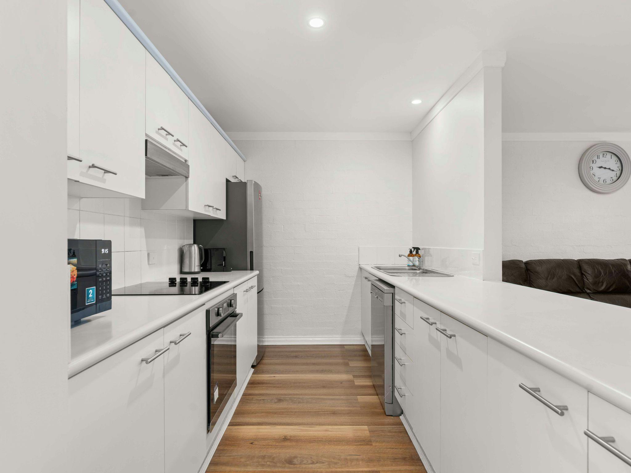 Vandy’s Valhalla offers a bright and comfortable retreat in the heart of Huskisson, perfectly placed for guests wanting easy access to beaches, shops, and the relaxed coastal lifestyle of Jervis Bay. Sleeping four, the townhouse features two well-appointed bedrooms—one with a queen bed and one with a double—each equipped with pedestal fans and built-in wardrobes. The main bathroom includes a shower, vanity, and toilet, with an additional separate toilet for convenience. The living and dining areas provide comfortable seating for four, a Smart TV, and a selection of board games, leading into a functional kitchen complete with a pod coffee machine, electric appliances, and essential pantry items.