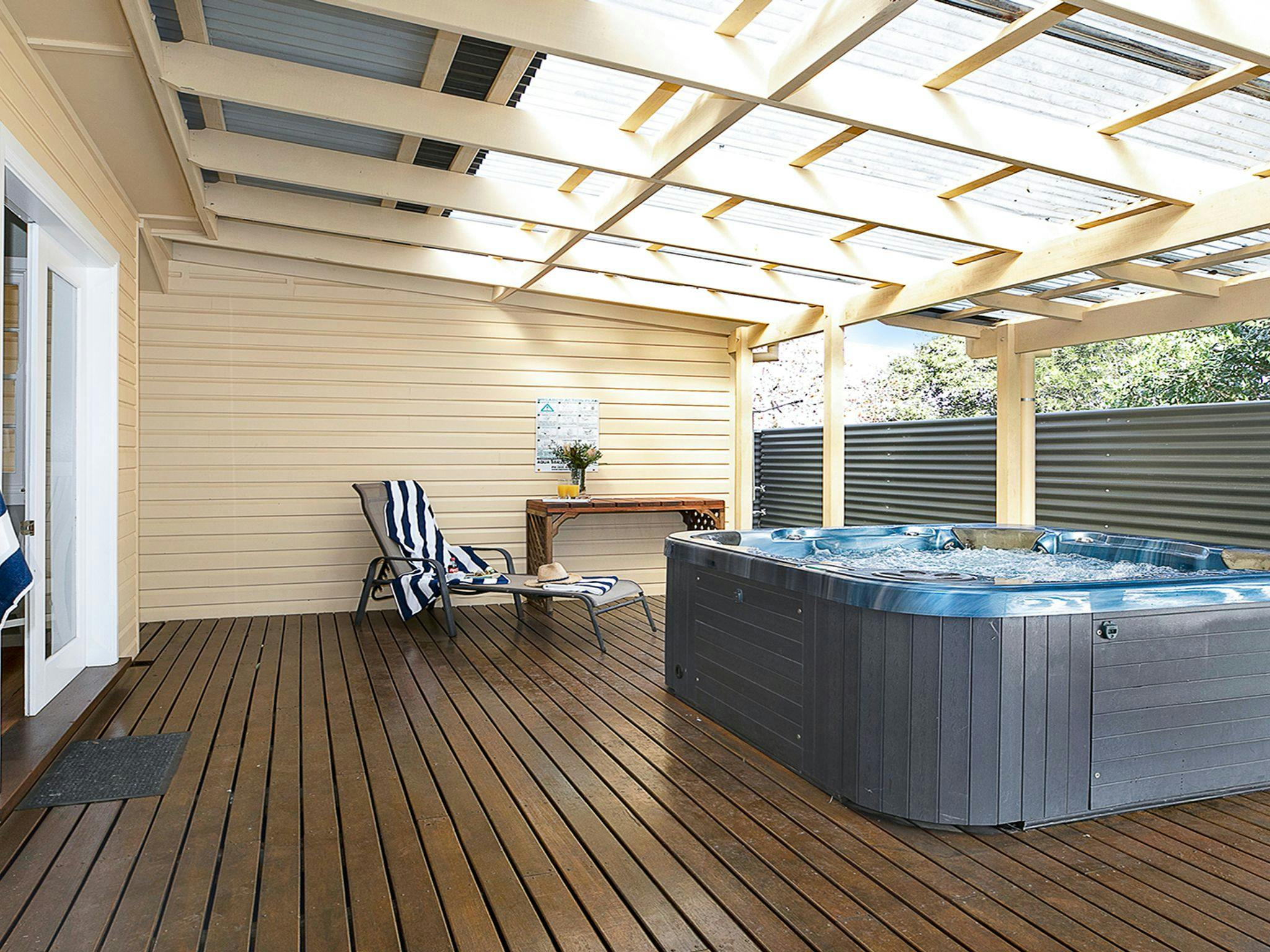 Kick back and unwind on the large wrap around veranda overlooking the spectacular river views whilst enjoying a barbeque and refreshments with family and friends. Enjoy a dip in the private hot tub whilst the last rays of sun slip gently down over the Shoalhaven River.