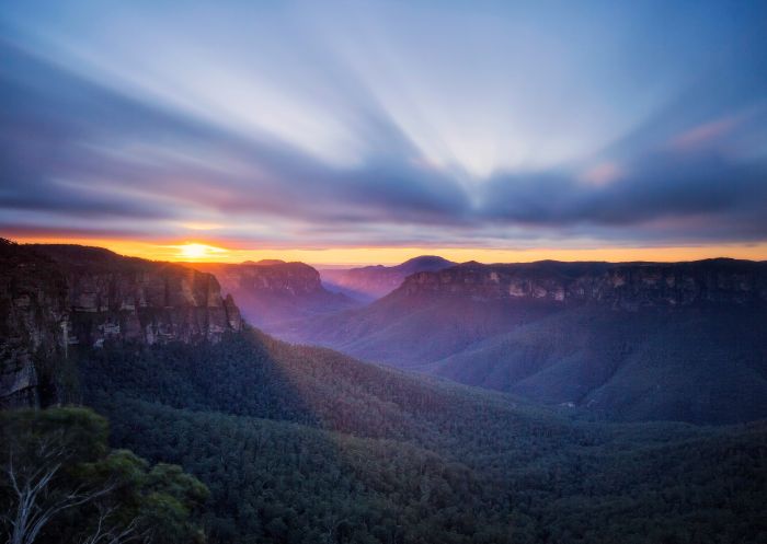 アクティブな旅行者にとって、ニューサウスウェールズ州でブルー・マウンテンズほど素晴らしい体験ができる場所はそう多くありません。この地域全体が事実上ひとつの広大な世界遺産の国立公園となっており、険しい断崖や切り立った砂岩の断崖から、絵のように美しい滝、そして古代の植物が点在するよく整備された遊歩道まで、変化に富んだ景観が広がっています。