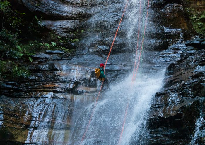 そのブルー・マウンテンズ・アドベンチャー・カンパニーカトゥーンバ駅の向かい側にあるこの場所は、4時間のアブセイリング入門アドベンチャーの出発点です。アブセイリングが初めての方でもご安心ください。最初は小さなアブセイリングを数回繰り返し、慣れるまでの過程から始まります。徐々に高い落下地点に挑戦し、4時間後には30メートルの落下も楽々とこなせるようになります。