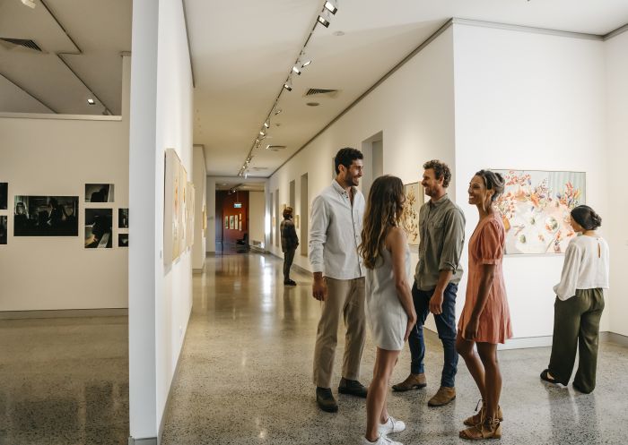 趣のあるマーウィランバ郊外にある建築受賞歴のある建物の中にある壮観なツイード地域ギャラリーとマーガレット・オリー・アートセンター地域や全国的に重要な歴史的・現代的展示の数々を巡り、五感を研ぎ澄ませてください。その後は、オーストラリアで最も著名な静物画家、マーガレット・オリーの自宅スタジオを再現した常設展を鑑賞しましょう。ガラス越しにギャラリーの周囲を眺めると、内部と同様に視覚的に感動的な景色が広がります。ウォルンビン・ウォーニング山、トゥイード・リバー、そしてゆっくりと青々とした草を食む牛たちの姿が一望できます。併設のカフェで地元の食材を味わいながら、きりっとした白ワインを片手に、この景色を堪能するのが一番でしょう。