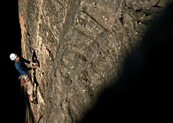 ブルー・マウンテンズはニューサウスウェールズ州のロッククライミングの中心地です。そして、その中には、ほぼすべてのオーストラリア人クライマーが一度は挑戦してみたいロッククライミングの難関、 ジャニセプトがあります。トラッドクライミング(ロープとハーネスを使った伝統的なクライミングスタイル)は、難易度21~22と比較的難易度は低いものの、砂岩の崖が27メートルにわたって続き、多様なテクニックが要求されます。中級クライマーにとっては真の挑戦であり、熟練者にとっては楽しい体験となるでしょう。ロッククライミングを始めたばかりの方は、ぜひご参加ください。 ブルー・マウンテンズ・アドベンチャー・カンパニー初めての屋外登山をガイドます。