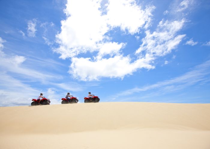 シドニーへ戻る前に、少し北へ寄り道してストックトン・デューンズへ。南半球最大の移動砂丘です。32キロメートルの海岸線を挟み、4,200ヘクタールの広さを誇り、高さは40メートルにも達します。ここはウォリミ族の土地で、アボリジニガイドによるクワッドバイクツアーに申し込むと、特別なアクセスを楽しめます。サンドデューンアドベンチャーズ四輪バイクでそびえ立つ砂丘を駆け抜けるスリル満点の体験は間違いなし。アクティビティはもちろんのこと、ブッシュタッカーや物語の語り部も楽しめます。ガイドが、毎年1~4メートル移動する砂に半分埋もれた巨大な貝塚(貝殻や動物の骨が山のように積み重なったもの)を案内してくれます。収益はすべて地元コミュニティに還元されます。