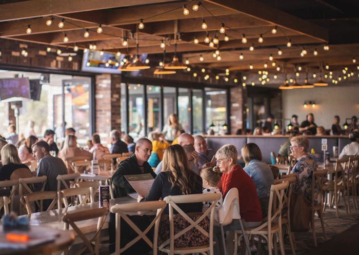 そのハントリー・タバーンハンターバレーで最も洗練されたガストロパブと言えるでしょう。むき出しのレンガ、磨き上げられた木材、そしてフェアリーライトが店内を彩ります。屋外パティオをはじめ、ドリンクを楽しめるスペースが複数あり、小さなお子様連れでも楽しめるプレイルームも完備しています。ビストロでは、メープルとジンジャーのポークバイツ、ガーリックエビのホットポット、ダブルビーフパティにオニオンリングをトッピングした「ロード・オブ・ザ・リング」バーガーなど、ワンランク上のパブ料理をお楽しみいただけます。
