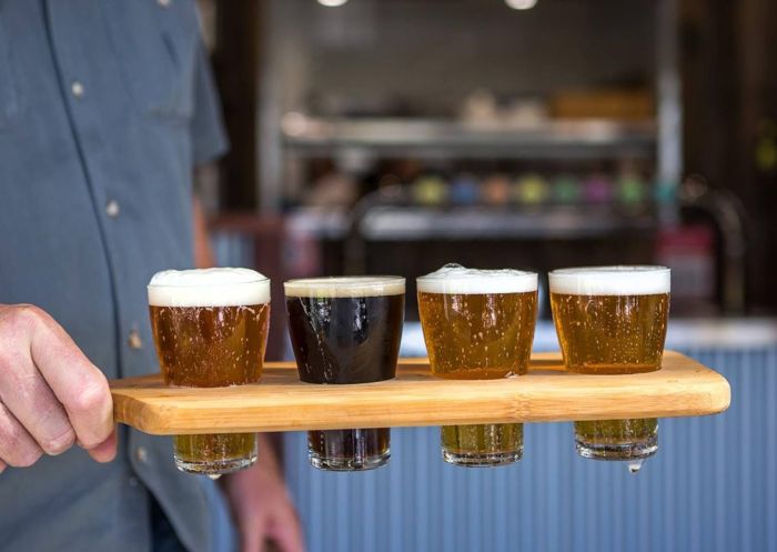 オーストラリアで最も有名なクラフトビールブランドの一つである4パインズは、かつてのマチルダベイ醸造所(そしてその前はブルータング醸造所)の跡地を引き継いで、ハンター・バレーリゾート. として知られているファームの4パインズ広々とした店内には、バーカウンターに12種類のタップ、陽光あふれるダイニングルーム、そして風通しの良いパティオがあります。お子様向けのメニューも充実しており、隣にはハンターファーム&アドベンチャーセンターふれあい動物園、動物への餌やり、乗馬などが楽しめます。