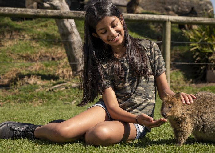 西シドニー、 ブラックタウン近郊のフェザーデール・シドニー・ワイルドライフ・パークには、オーストラリア固有の動物が数多く生息しています。中でも、西オーストラリア州ロットネスト島に生息する愛らしいクオッカは必見です。10歳以上であれば誰でも参加できるクオッカとのふれあい体験に申し込んで、囲いの中に座り、餌をあげたり、いつも笑顔のクオッカたちと、誰もが憧れるセルフィーを撮ってみませんか?