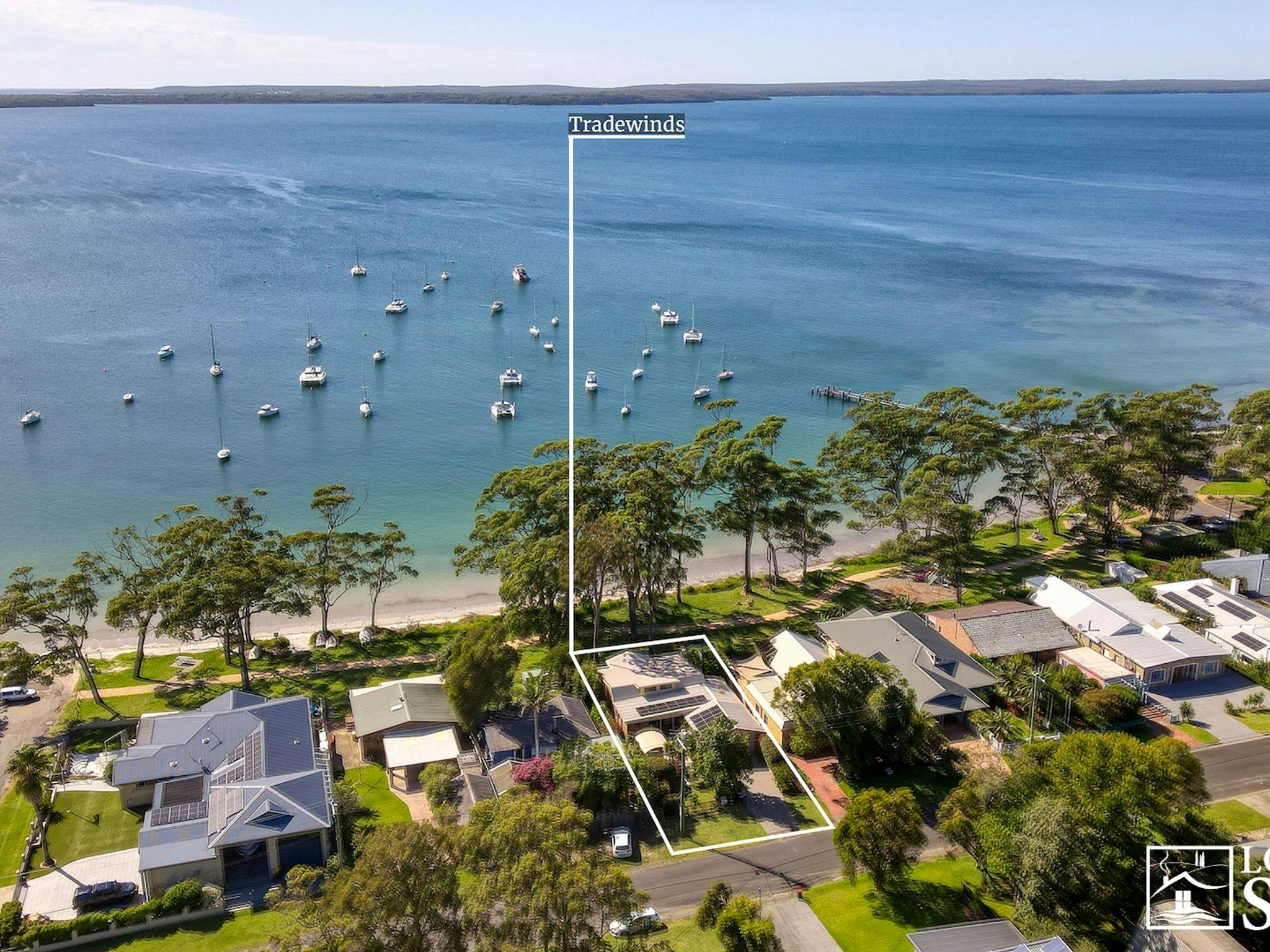トレードウィンズはジャービス湾の北岸の木々に囲まれています。
