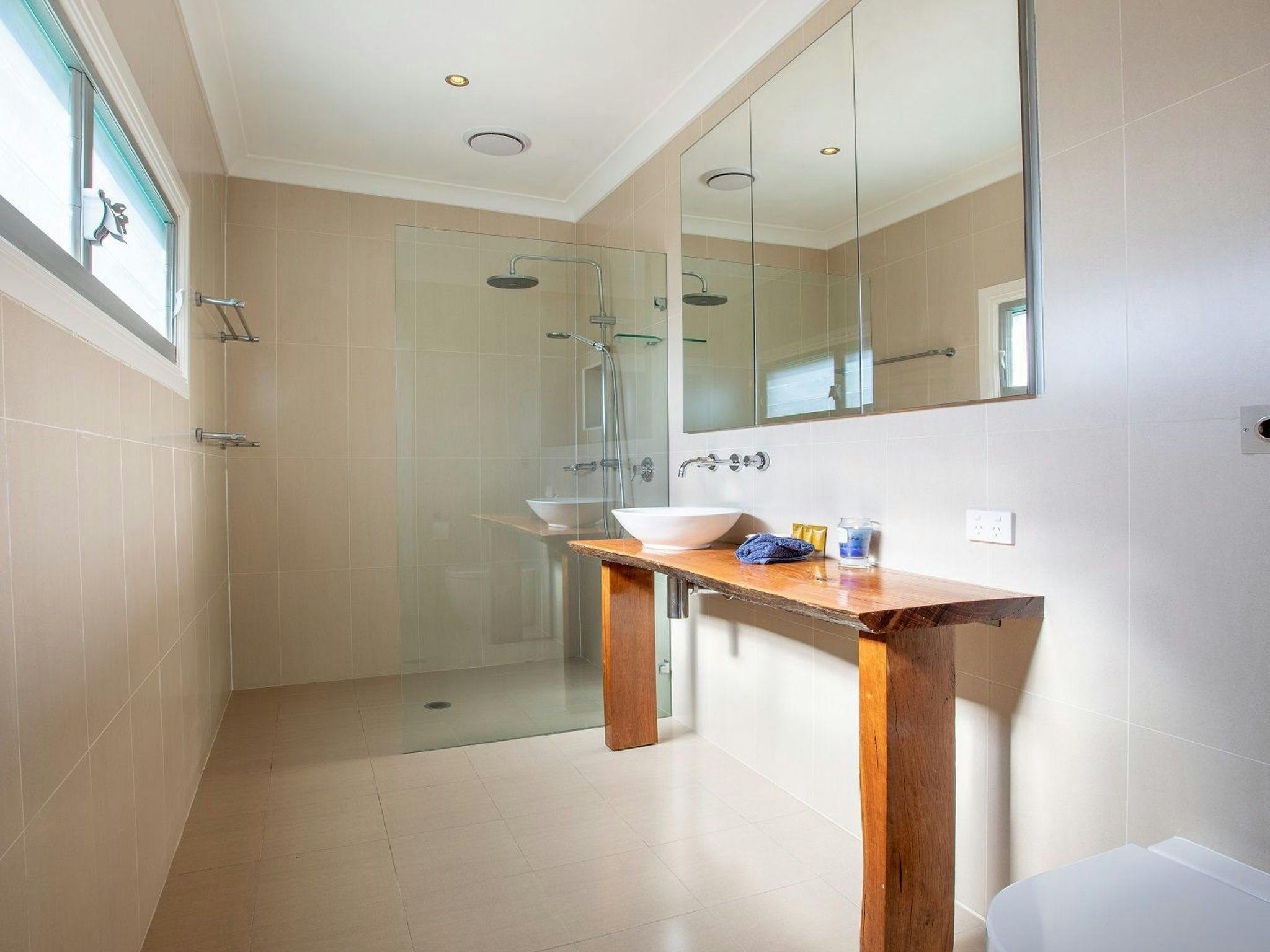 메인 침실에는 매우 편안한 퀸사이즈 침대, TV 샤워 시설 화장대 화장실이 있는 실내 욕실이 있습니다. 다른 모든 침실에도 고급 침구와 붙박이 가운이 있습니다. 퀸 침실에는 각각 천장 선풍기가 있습니다.