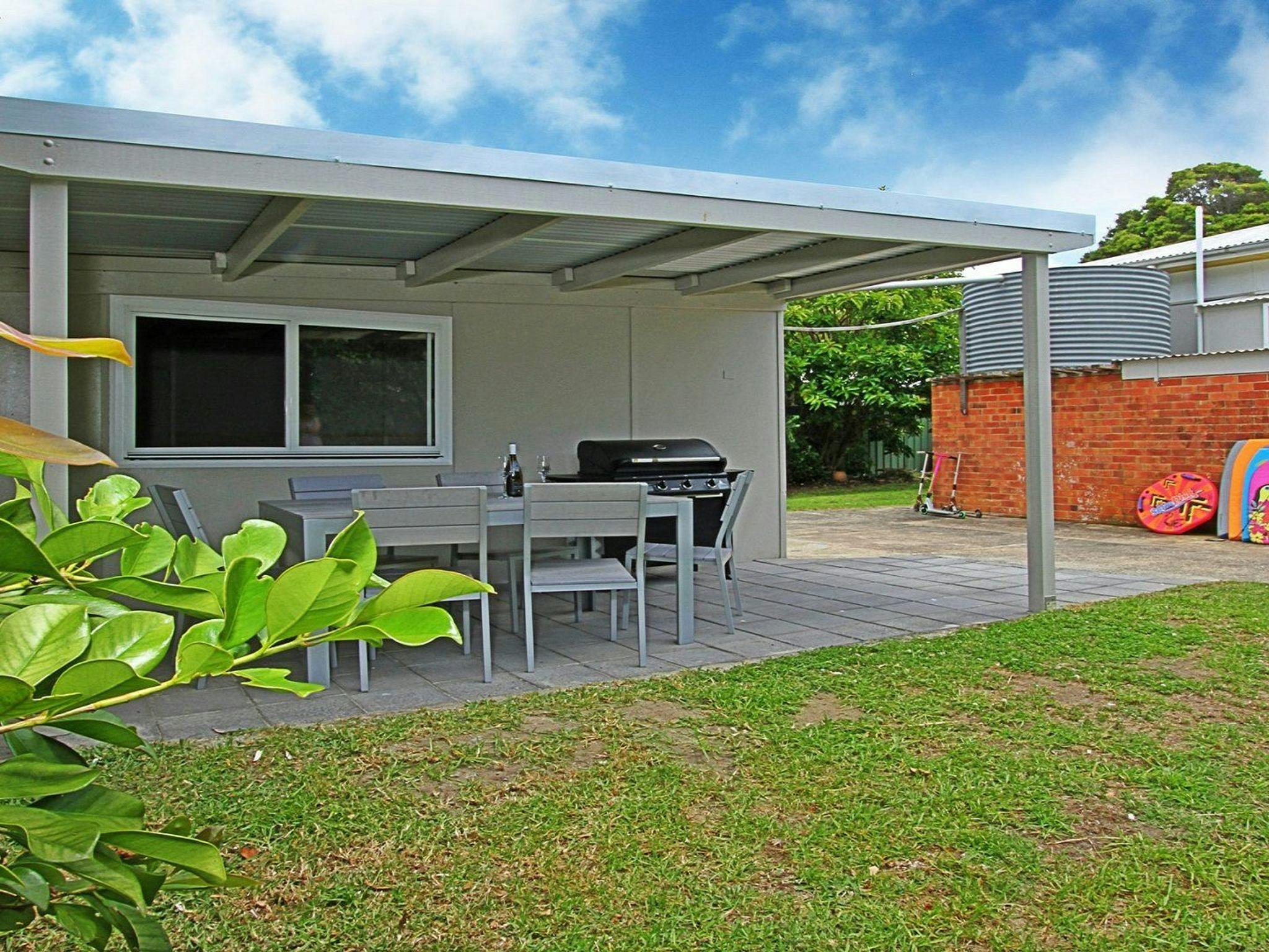 완전히 울타리가 쳐진 뒤뜰은 사랑스럽고 푸르른 곳으로 어린이와 애완동물에게 적합하며 지붕이 있는 바브레크 공간이 있습니다. 바다 소리를 들으며 휴식을 취하기에 완벽한 장소입니다. 그것은 일광욕 라운지, 6개의 의자가 있는 대형 테이블, 4구 버너 후드 가스 바비큐로 꾸며져 있습니다. 차고에 있는 탁구대와 장비는 즐거운 시간을 선사할 것입니다.