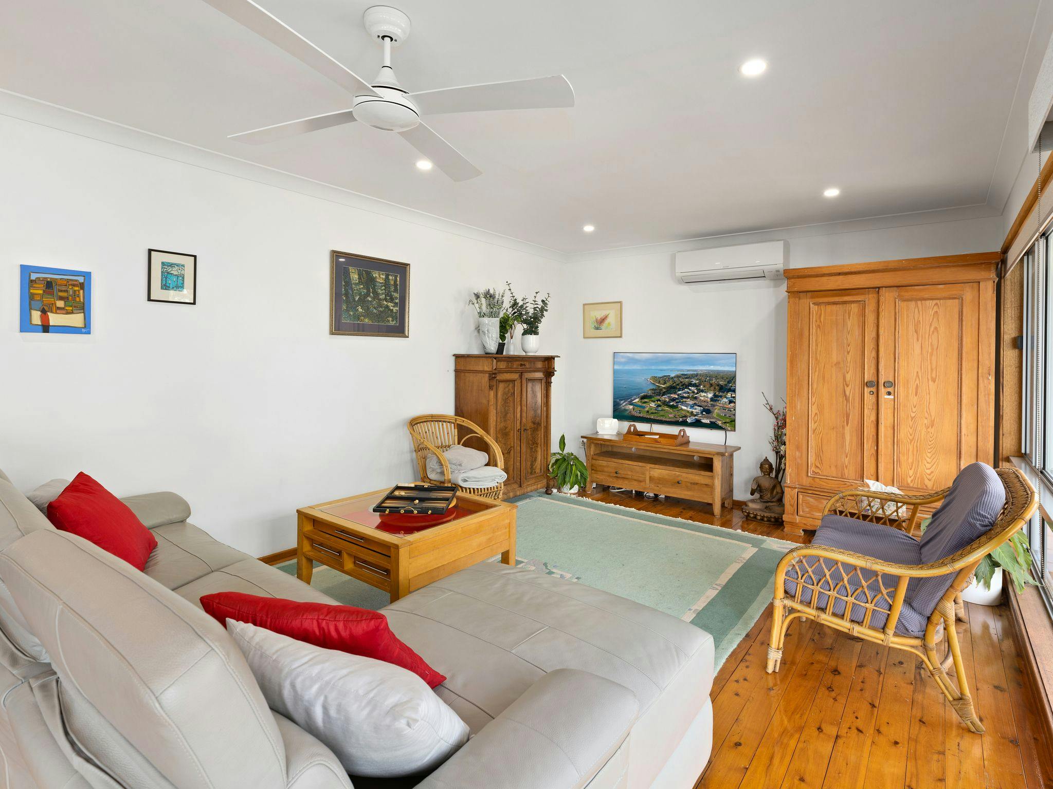 그늘진 유칼립투스 나무들 사이에 자리 잡은 이 매력적인 코티지는 고요하고 고풍스러운 베이슨 뷰 마을의 유리처럼 맑은 바닷물을 내려다보고 있습니다. 밝은 흰색으로 새롭게 꾸며지고 나무로 만든 앤틱 가구가 돋보이는 이 3베드룸 주택은 따뜻하고 편안합니다.
