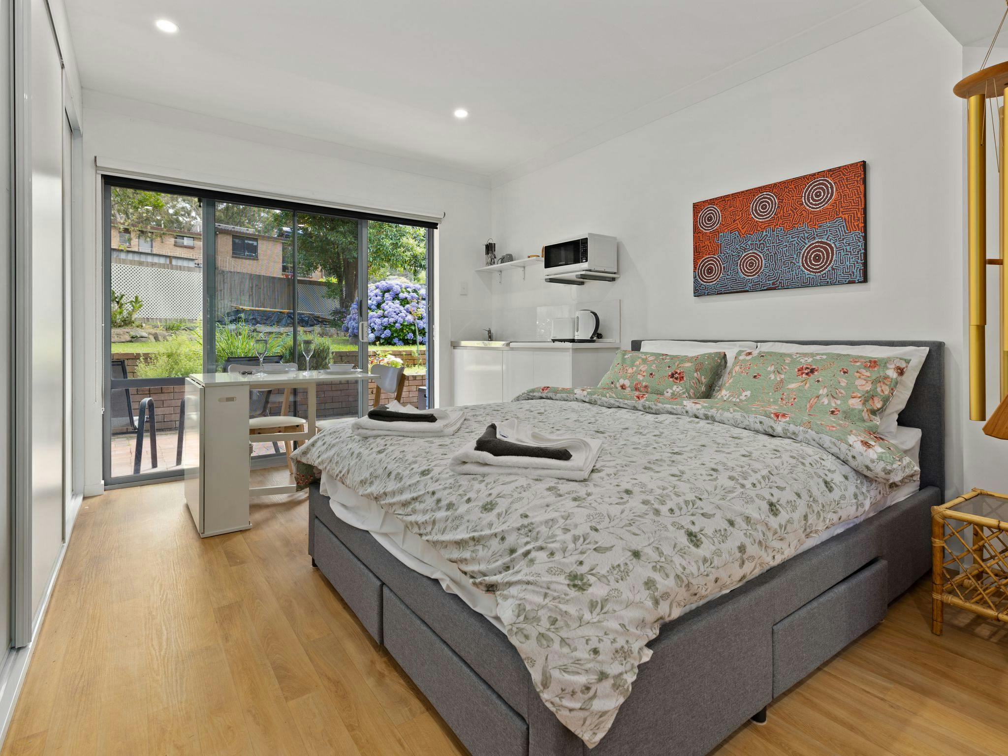 분지 주변에는 아름다운 토종 동식물이 가득하며 투숙객은 아름다운 새들의 방문과 아침저녁으로 캥거루와 주머니쥐의 방문을 즐길 수 있습니다.