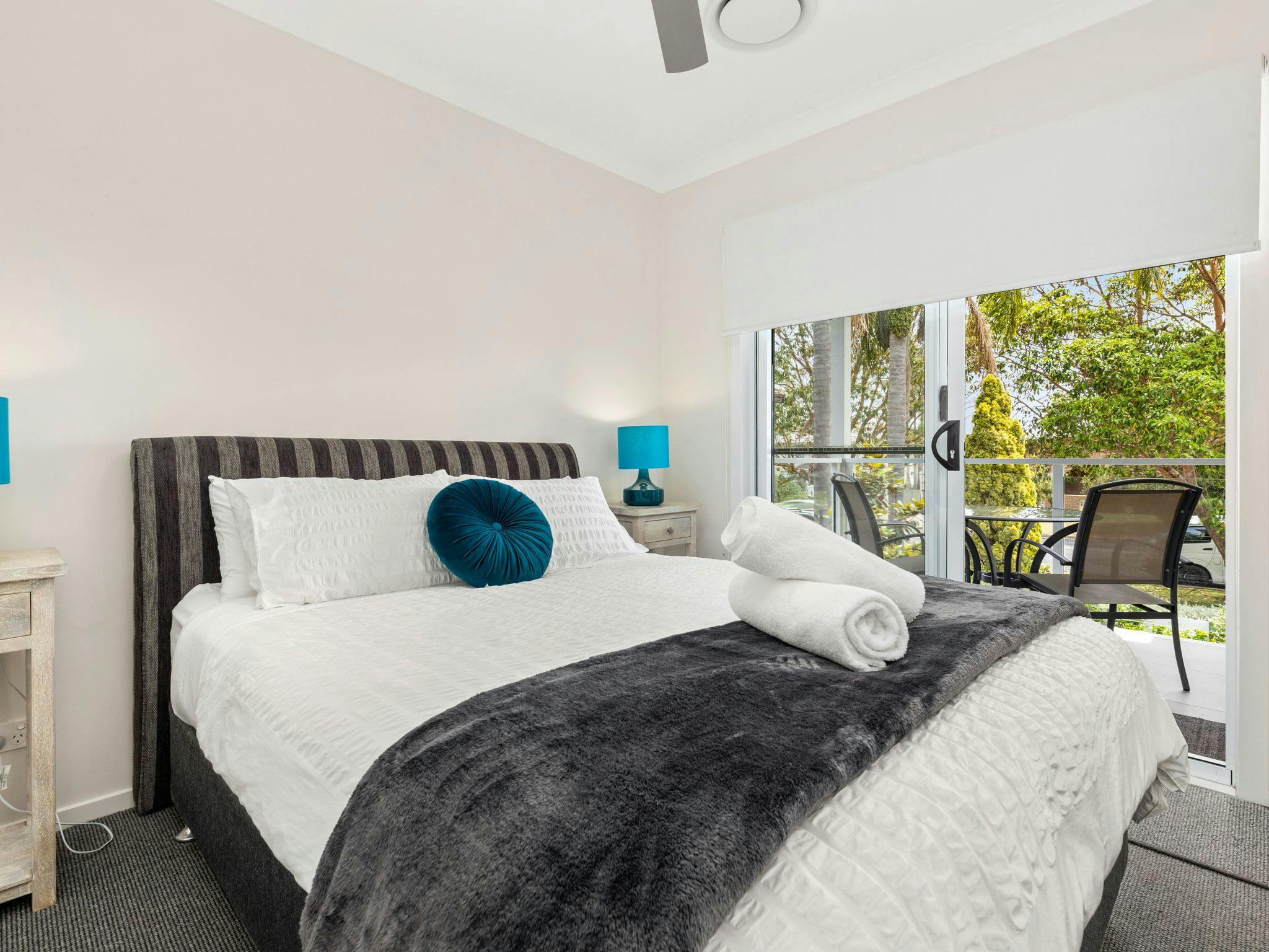 Husky Beach Coastal Paradise in Huskisson offers a relaxing retreat, sleeping six across three comfortable bedrooms. The property features two queen bedrooms with ceiling fans and a third room with two single beds. Enjoy two modern bathrooms and an open-plan living area with seating for six and a Smart TV.