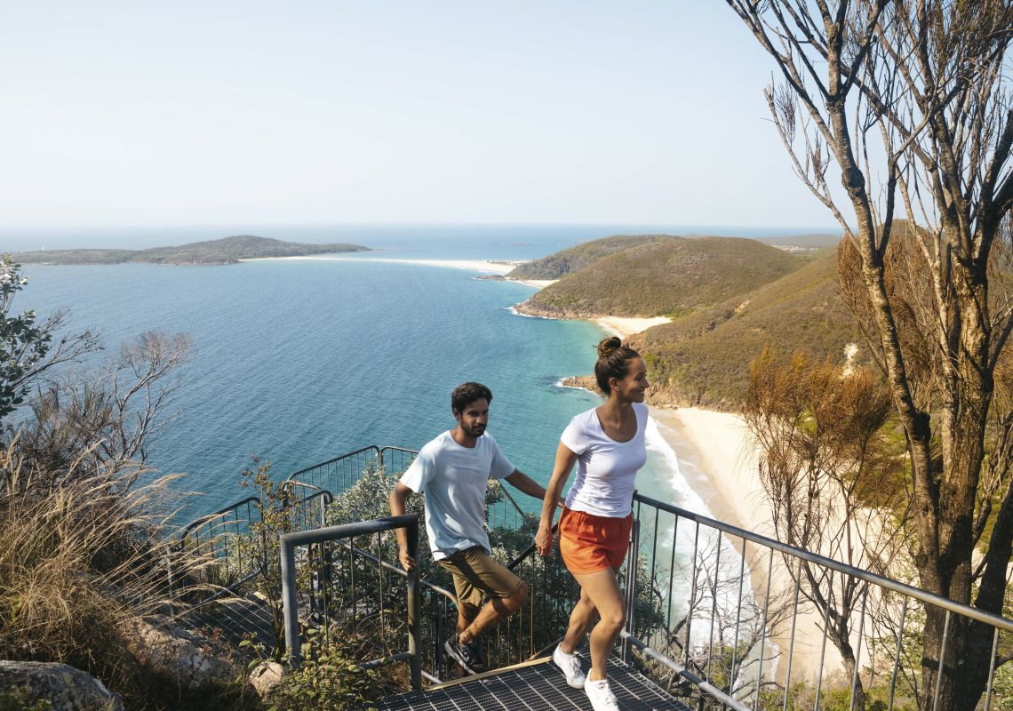 Keen on a shorter, but equally beautiful experience? The Tomaree Head Summit Walk is 2.2km-return, Grade 5 hike overlooking the Jurassic Park-like Shoal, Port Stephens and Fingal Bays, beginning at the end of Shoal Bay Road.