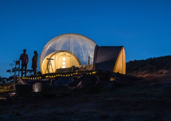 There are few better places in NSW to watch the world slow down than Bubbletent Australia, which comprises five clear inflatable domes on a 400-hectare working farm overlooking the Capertee Valley, between Lithgow and Mudgee, 200 kilometres west of Sydney. The five transparent spheres sit atop raised wooden decks and provide a spectacular view of the stars at night and the vast valley during the day (Capertee is one of the world’s largest canyons).