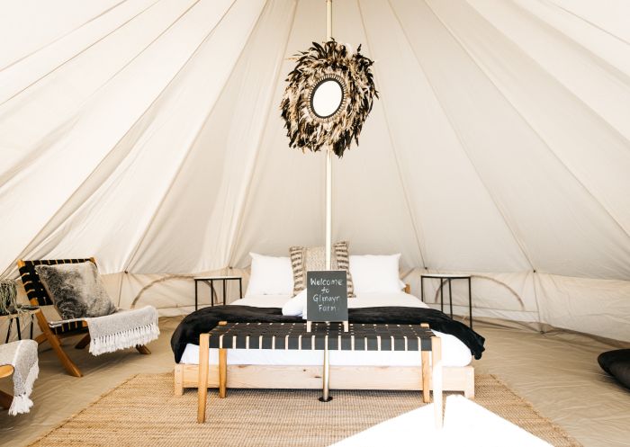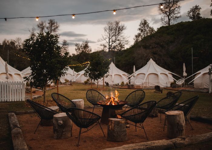 Twice a year, stylish glamping tents pop up in the grounds of the sublime Mayfield Garden in Oberon. Hosted by Simple Pleasures Camping Co, the 15 bell tents are available for a month in spring and autumn. Enjoy dinner and drinks, stargaze by Obelisk Pond, relax around the fire pit and then sleep soundly in a queen-size bed.