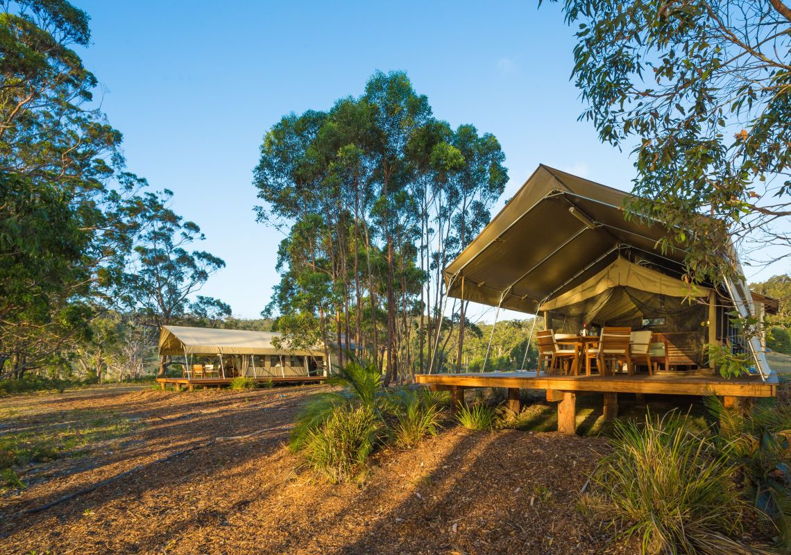 Further south, between Tathra and Bermagui and surrounded by Mimosa Rocks National Park, is Tanja Lagoon Camp. As the name suggests, the camp sits on the fringes of a coastal lagoon and is a short walk to stunning Middle Beach. The four safari tents have well-equipped kitchens, a lounge area and en suites, as well as decks to sit and enjoy the silence. Enjoy a breakfast of local produce and then canoe or kayak on the lagoon. Batteries recharged? Tick.