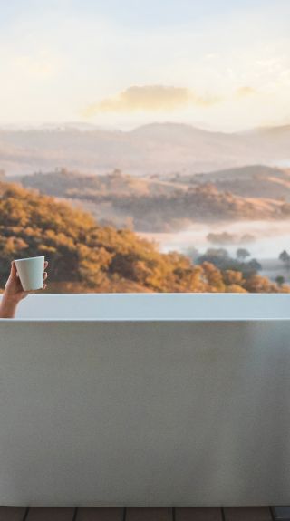 Sierra Escape, just 20 minutes from Mudgee in central west NSW, is a magical place to unwind and recharge. The five luxury safari tents are set on 110 hectares of rolling countryside, which you can take in as you loll on your deck, sipping a great local wine or toasting marshmallows if the weather is cool. Soaking in your indoor or outdoor freestanding bath is about as good (and rejuvenating) as it gets.